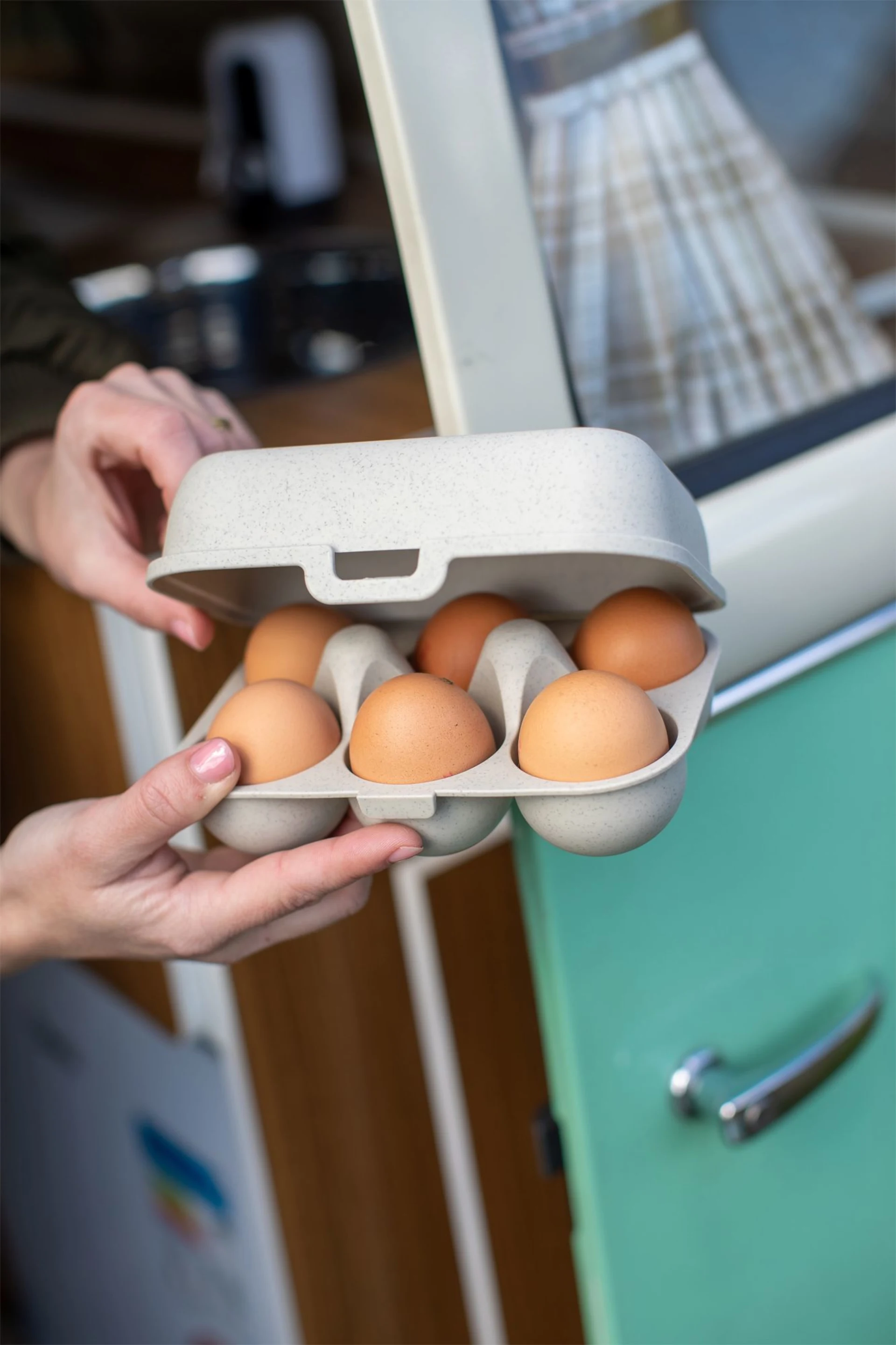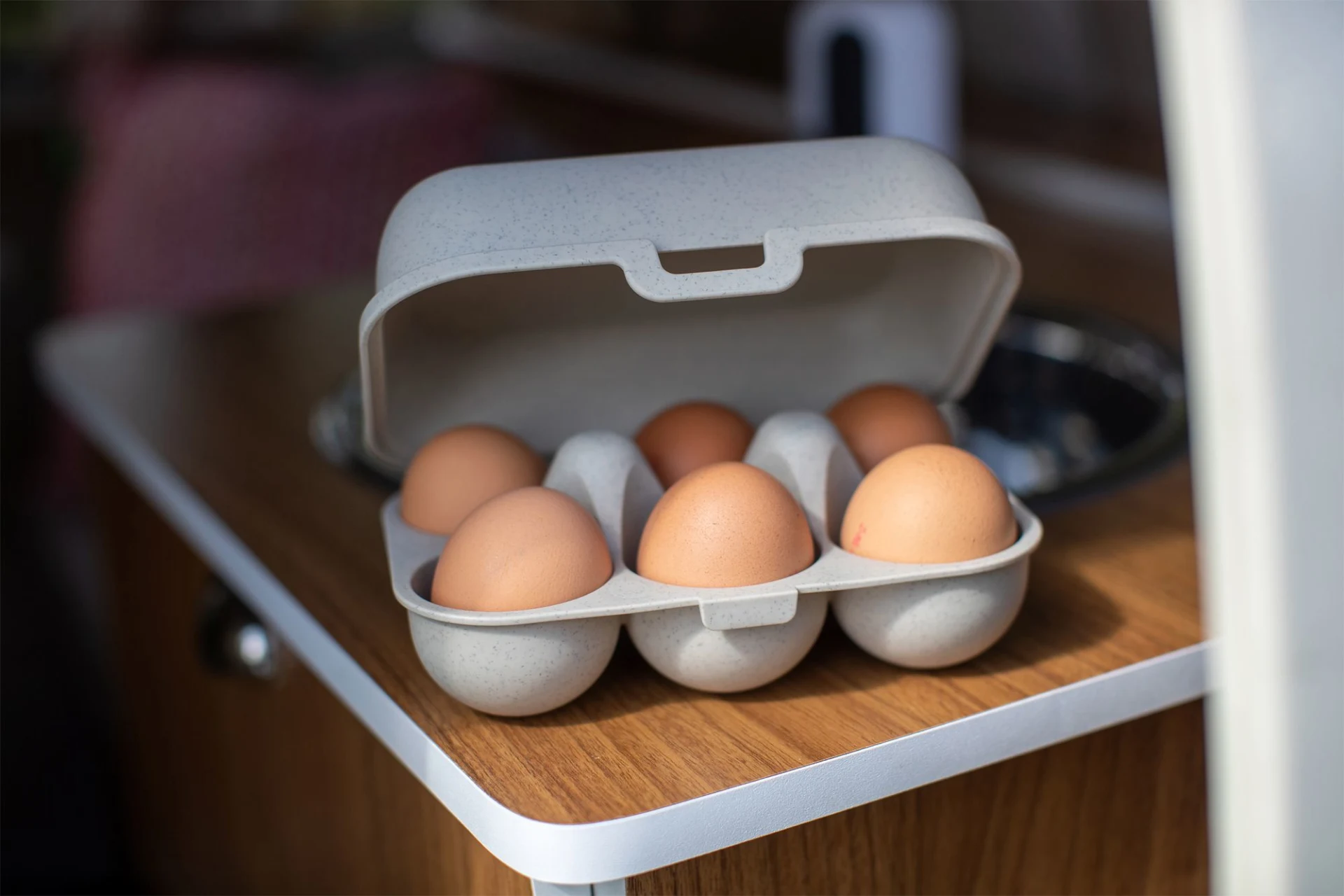 Eggs to go mini est parfait pour faire ses courses au marché ou dans le magasin de ferme le plus proche. La boîte transporte jusqu'à six œufs à la maison en toute sécurité et permet d'économiser beaucoup d'emballages jetables. Elle a une fermeture à clip pratique pour l'ouvrir et la fermer facilement et le matériau résistant aux chocs empêche de manière fiable que les œufs soient endommagés ou écrasés. Les boîtes peuvent être facilement empilées dans le réfrigérateur, ce qui laisse plus d'espace de rangement pour d'autres aliments.