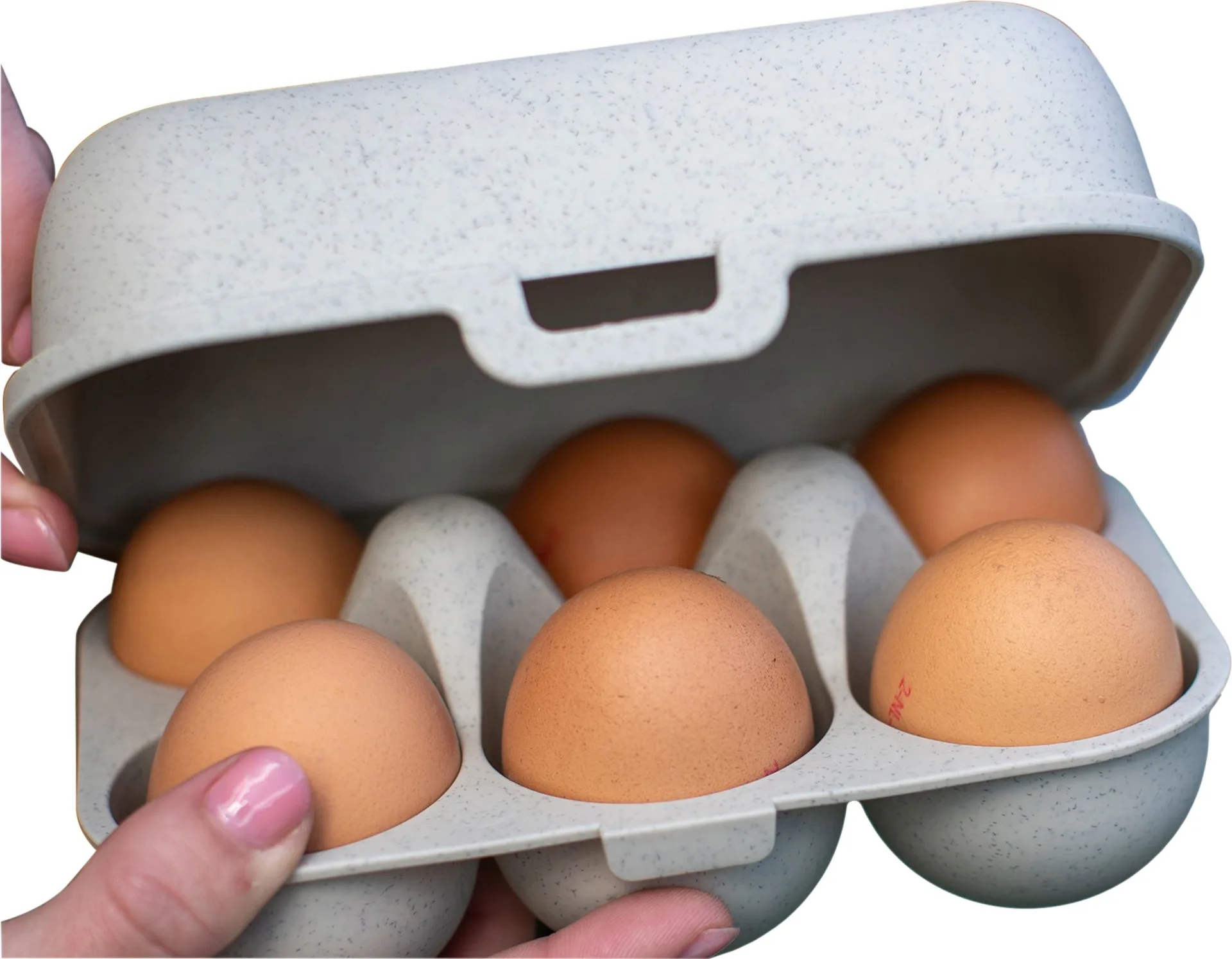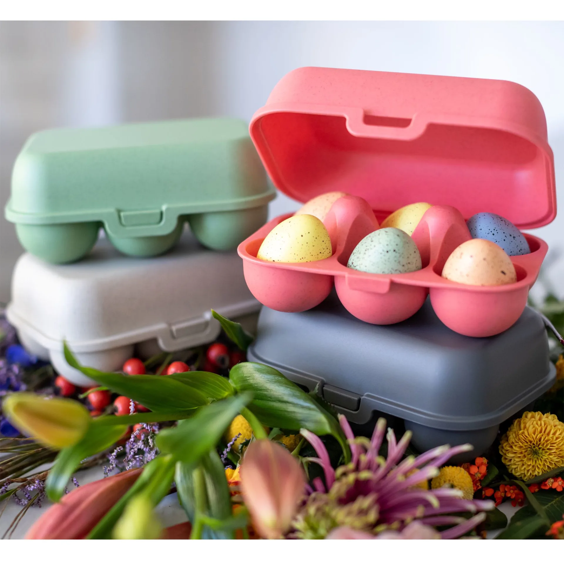 Eggs to go mini est parfait pour faire ses courses au marché ou dans le magasin de ferme le plus proche. La boîte transporte jusqu'à six œufs à la maison en toute sécurité et permet d'économiser beaucoup d'emballages jetables. Elle a une fermeture à clip pratique pour l'ouvrir et la fermer facilement et le matériau résistant aux chocs empêche de manière fiable que les œufs soient endommagés ou écrasés. Les boîtes peuvent être facilement empilées dans le réfrigérateur, ce qui laisse plus d'espace de rangement pour d'autres aliments.