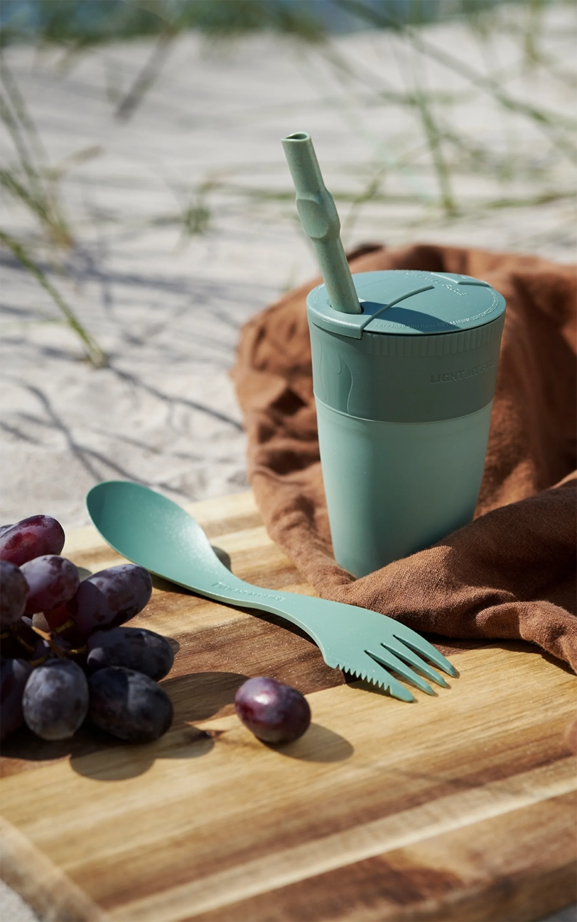 1 spork, 1 gobelet, 1 paille, sac en filet en PET recyclé