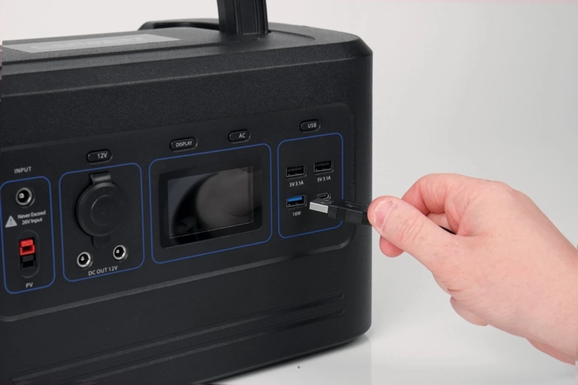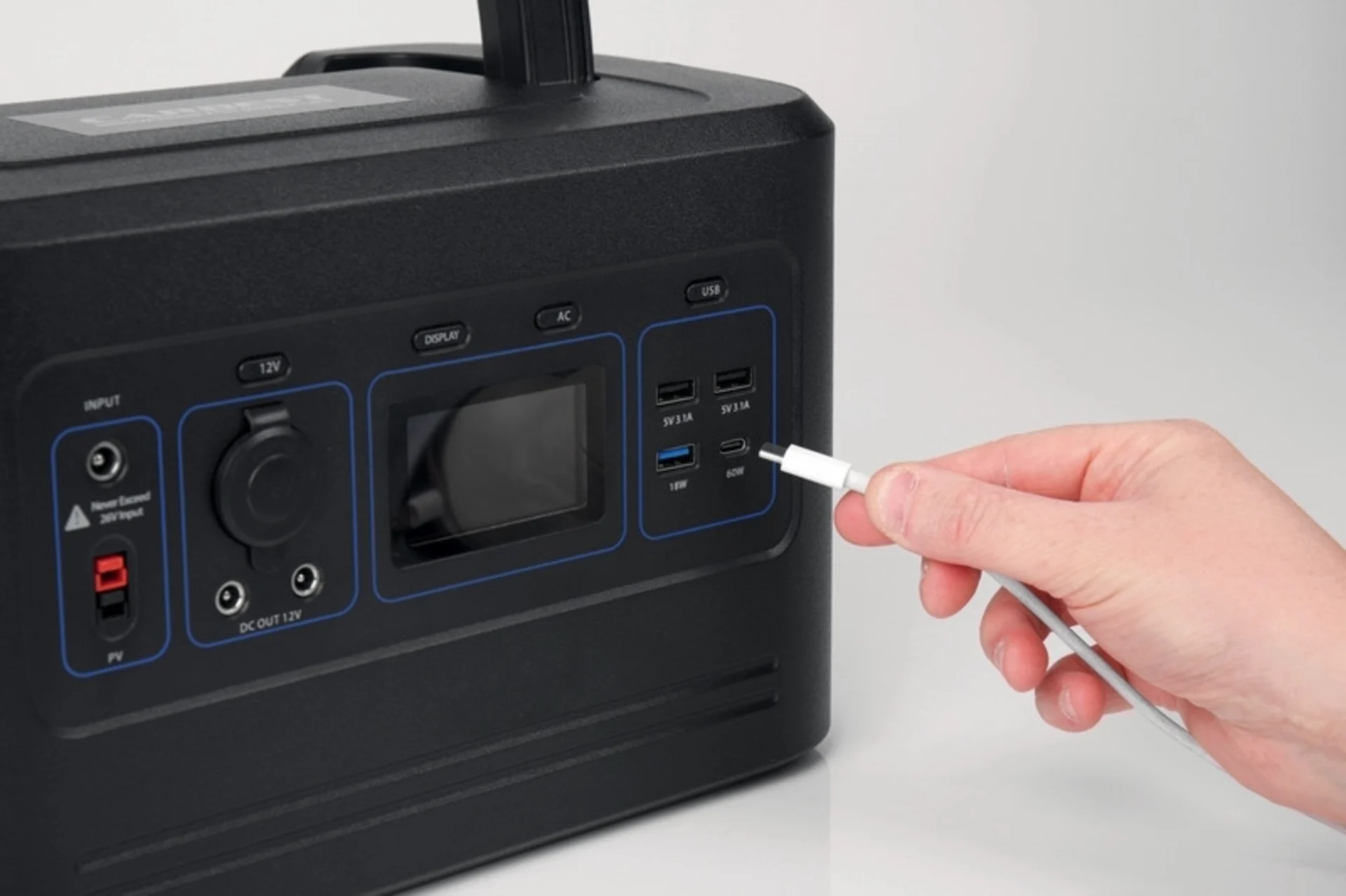 - 1x entrée de charge pour les panneaux solaires