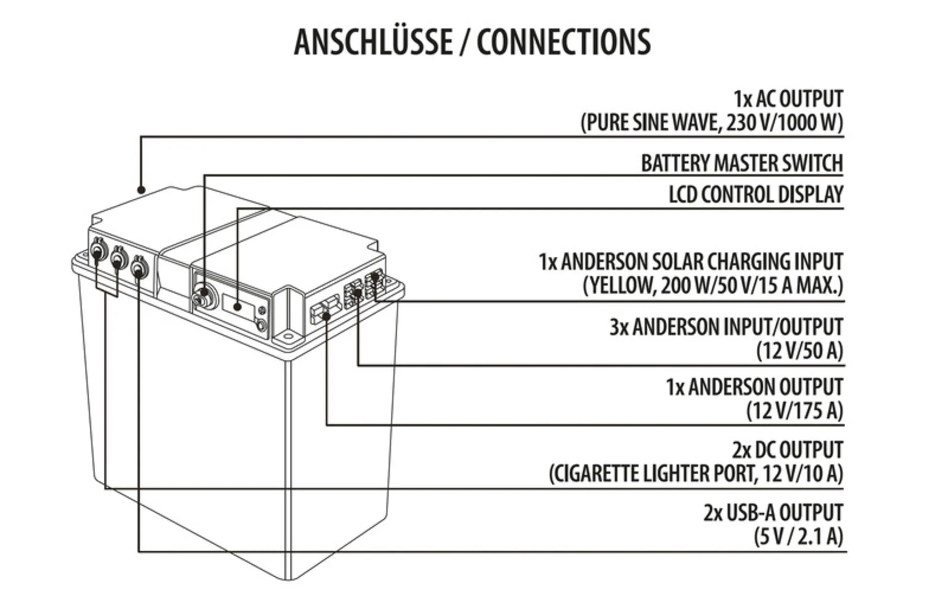 Solution d'alimentation portable ALL-IN-ONE. De l'énergie à tout moment et partout. Idéal pour une utilisation en voiture ou pour toutes sortes d'activités en plein air.