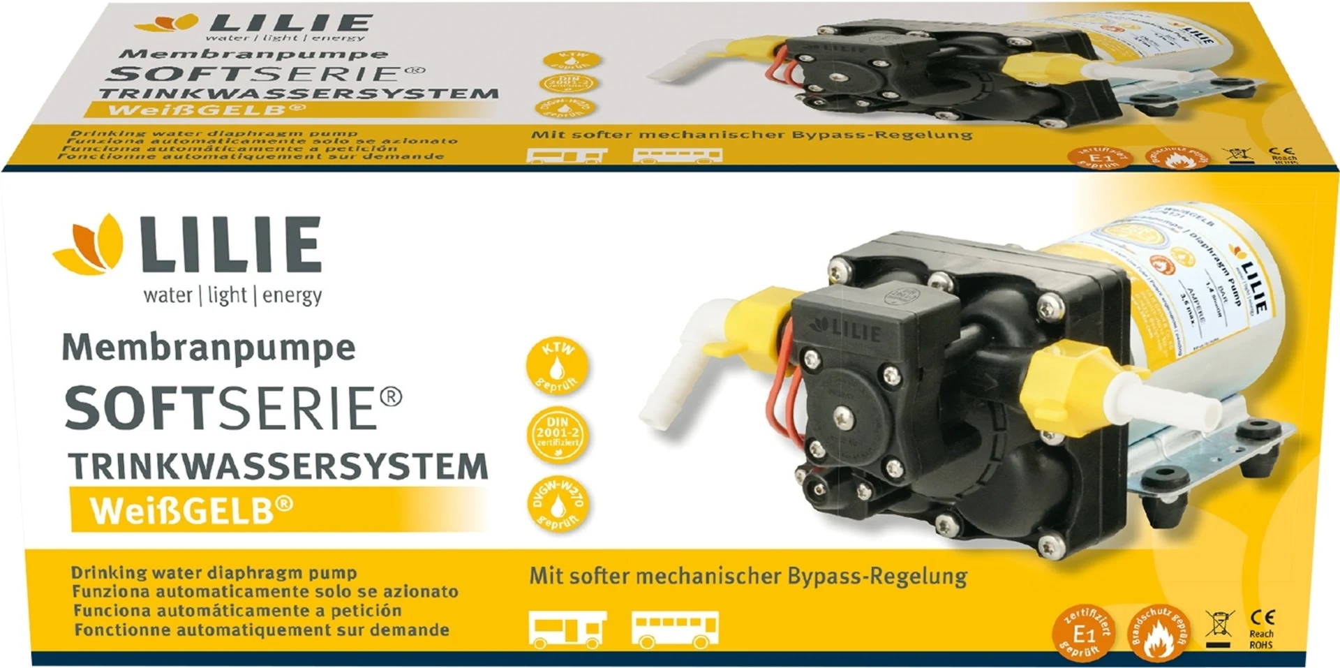 La série SOFTSERIE est le développement de la série CLASSICSERIE éprouvée. Grâce à la membrane unique à 4 chambres et à l'écoulement optimisé, à un moteur silencieux nouvellement développé et à un contrôle de dérivation intégré comme pièce maîtresse, un écoulement d'eau particulièrement doux et silencieux est garanti. Chaque tête de pompe dispose d'un clapet anti-retour pour plus de 13 bars. Aussi bien au démarrage qu'à la fermeture du robinet, la pompe reste silencieuse sans cliquetis.