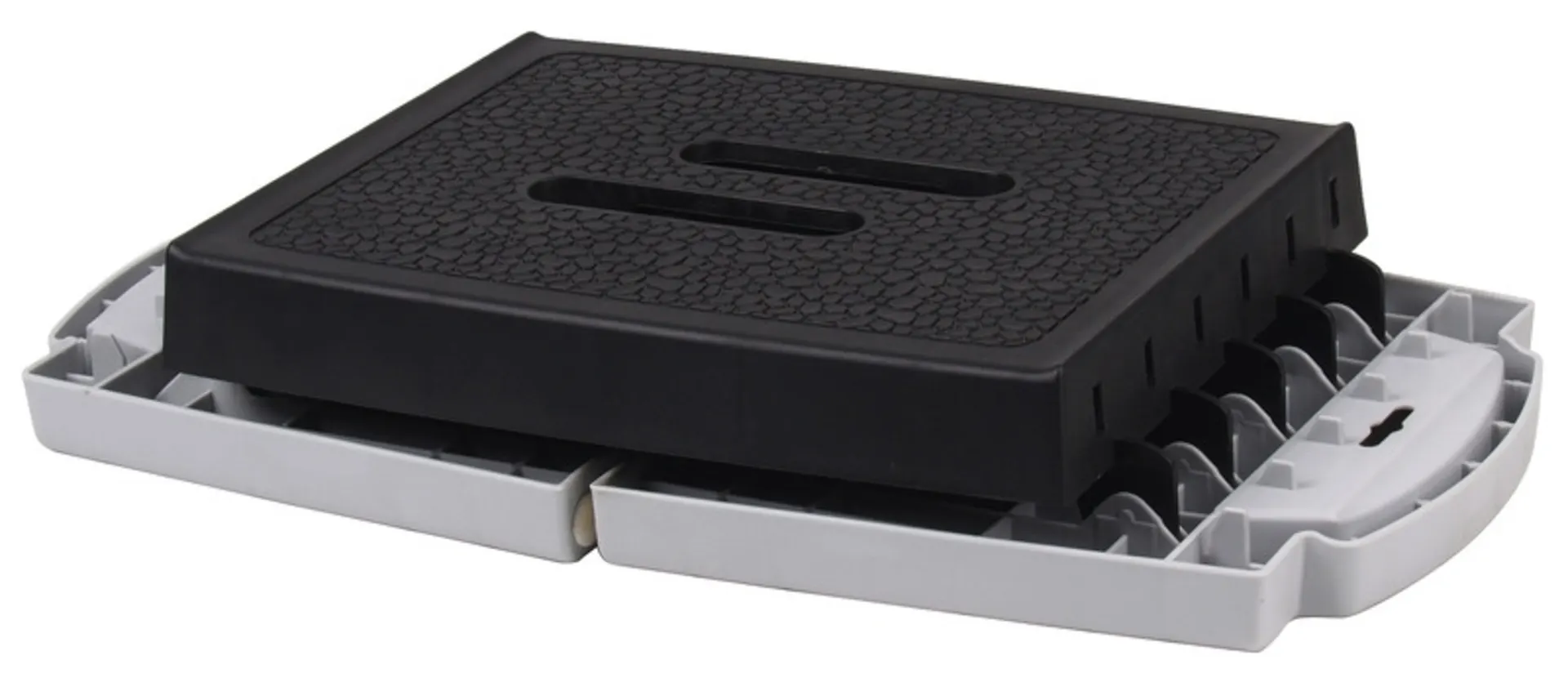 Ce marchepied pliable est polyvalent et extrêmement résistant. Il a une grande surface de marche. Plié, il est facile à ranger.