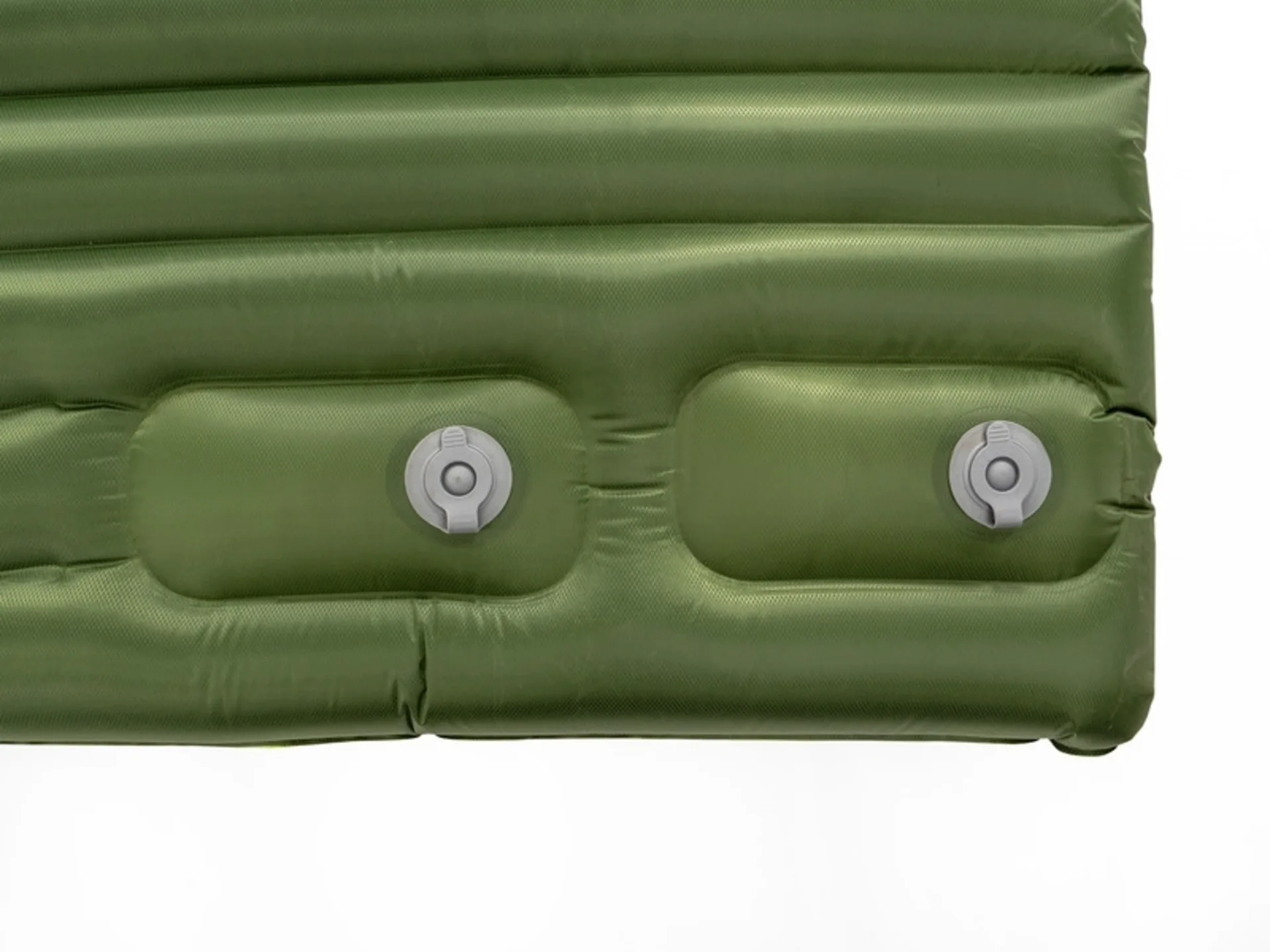 Matelas gonflable pour 2 personnes avec pompe à pied intégrée, mais si nécessaire, il peut aussi être gonflé avec une pompe à air. Surface douce en polyester ripstop 210T de haute qualité avec TPU.