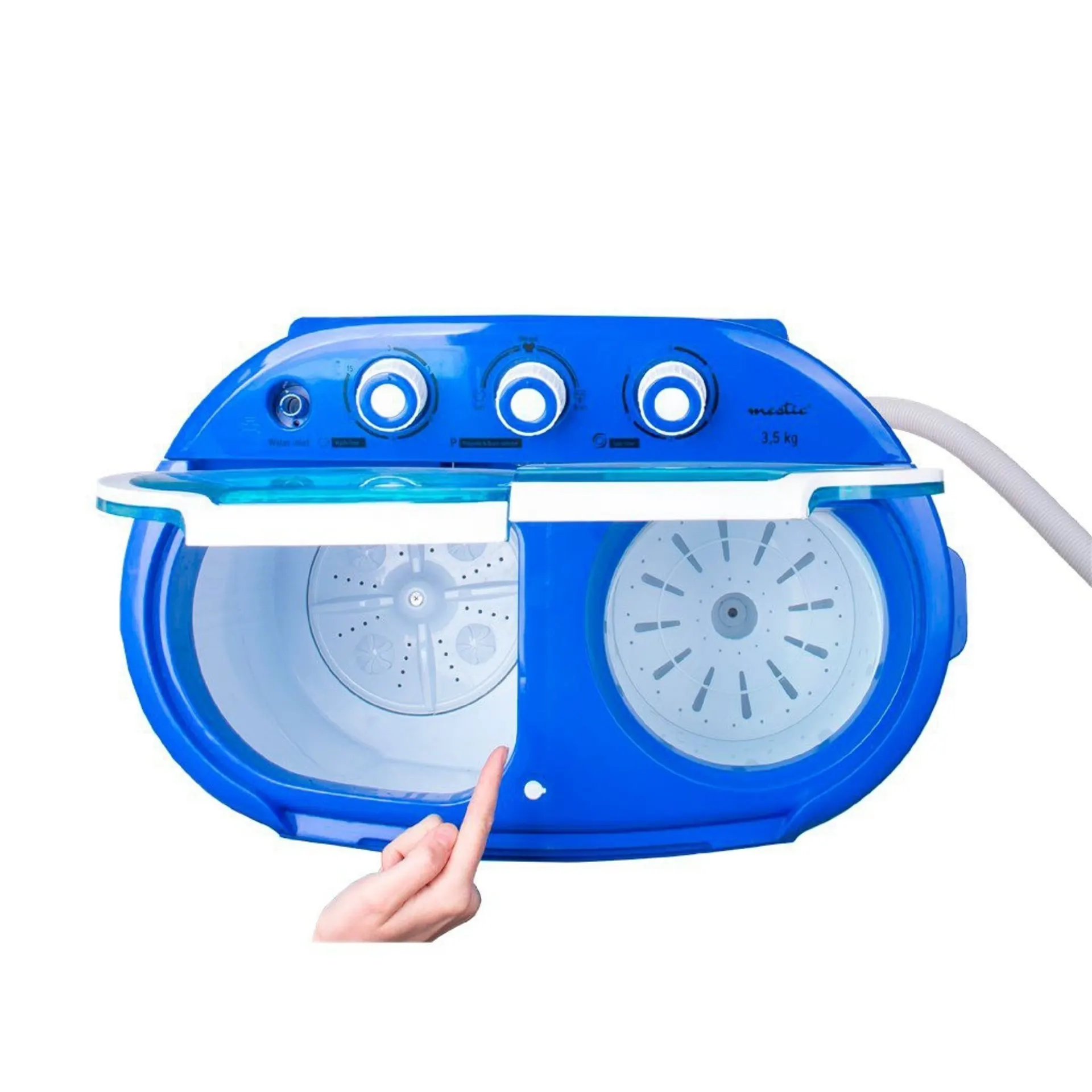 Le modèle Mestic MW-120 est à la fois une machine à laver et un sèche-linge. Ce modèle est léger et compact, idéal pour l'emporter en voyage. La mini machine à laver est alimentée par un moteur durable qui te permet de nettoyer 3,5 kg de linge sec, que tu peux ensuite sécher immédiatement. Le lave-linge/essoreuse Mestic MW-120 est capable de sécher du linge mouillé pesant jusqu'à 1,5 kg. Le moteur de cette machine à laver combinée n'a pas de balai de charbon, ce qui signifie que l'ancre dans la machine est équipée d'un aimant permanent. Cela permet au moteur d'être économe en énergie, de ne pas surchauffer rapidement et d'être très silencieux.