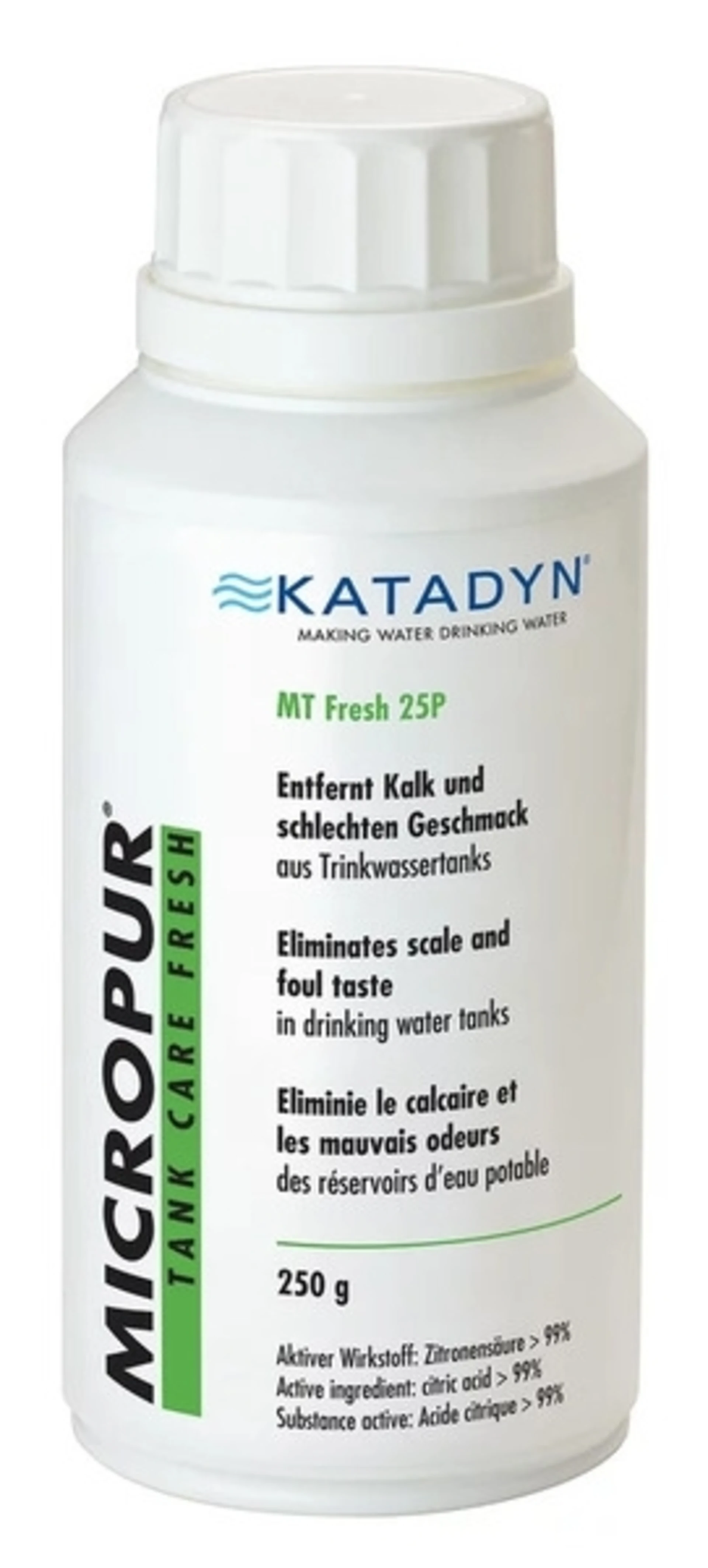 Die Micropur Tankpflege- und Wasseraufbereitungsprodukte sind eine einfache Lösung gegen Probleme, die Bakterien und Algen verursachen. MT Fresh beseitigt mit natürlicher Zitronensäure muffigen Geruch, schlechten Geschmack und Kalk in Wassertanks, Leitungen und Pumpen.
