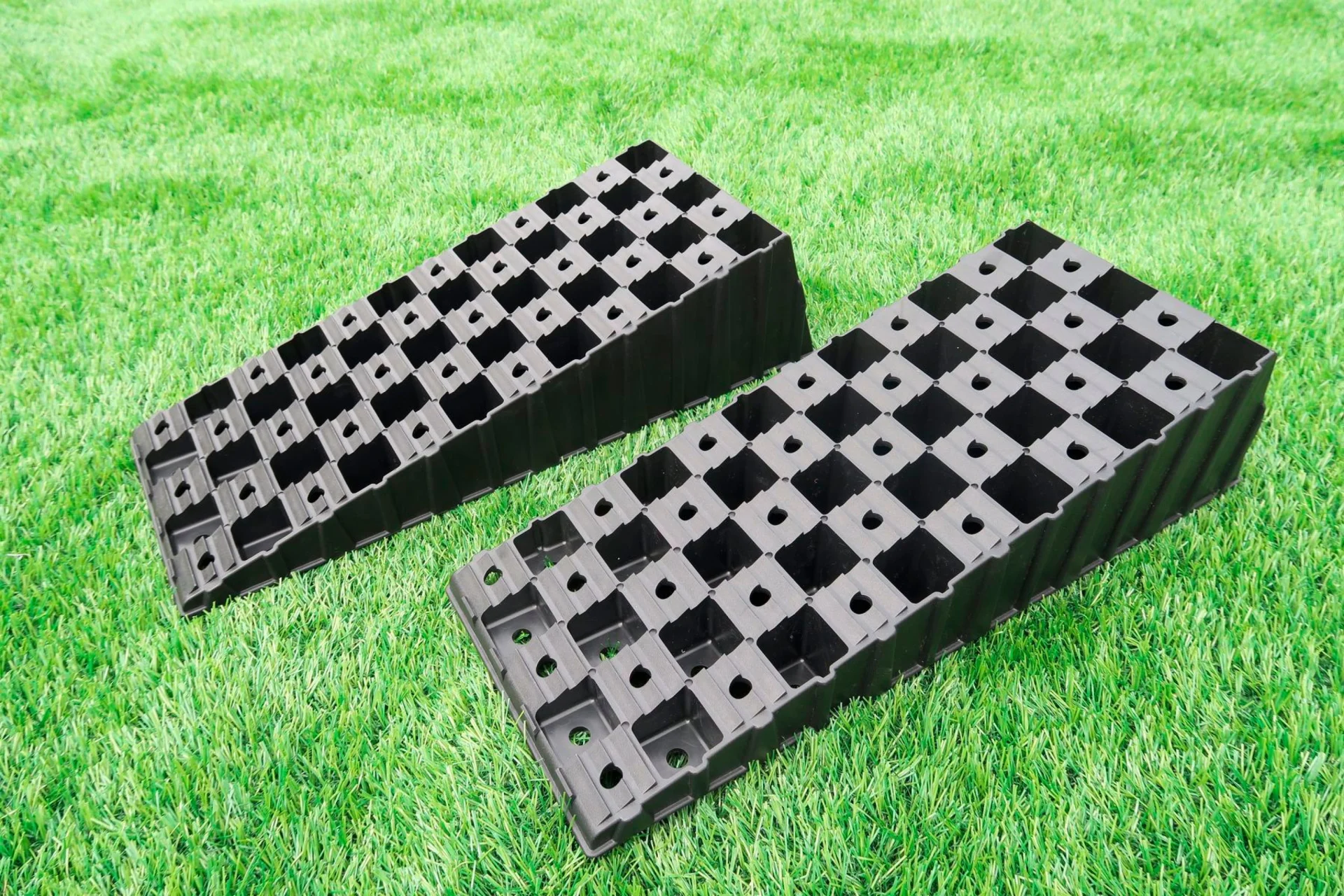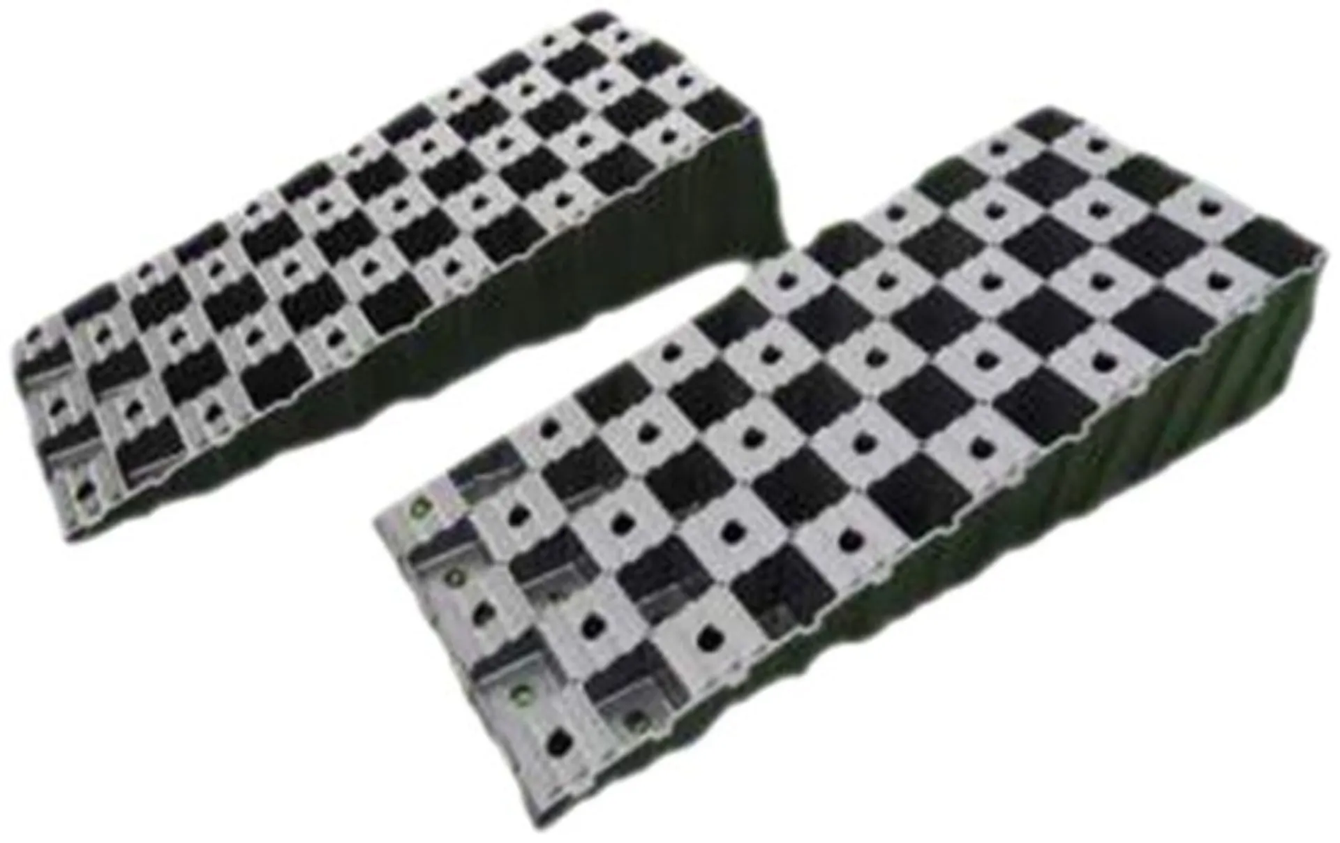 La cale d'accès sans marche MGI est un produit de qualité et dispose d'un design traditionnel avec la répartition habituelle de la surface entre 50 % en bas et 50 % en haut. Les cales sont légères, antidérapantes et ont une solide adhérence au sol. Le bord avant adhérent empêche la cale de glisser lorsqu'elle est enfoncée et il n'est pas nécessaire de placer des tapis antidérapants sous la cale.