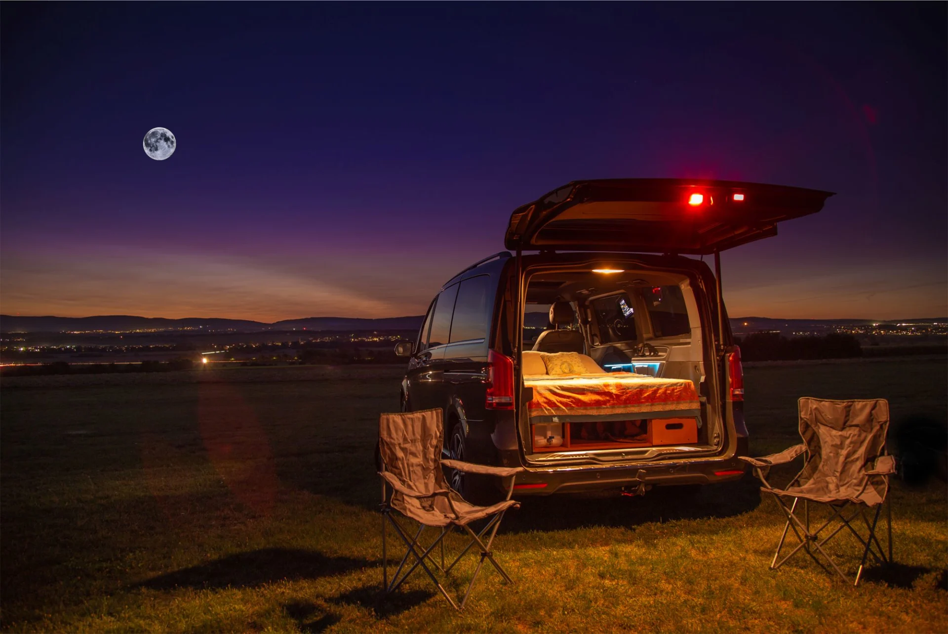 Innerhalb von einer Minute verwandelt sie das Fahrzeug in einen Mini-Camper, egal wann, egal wo.