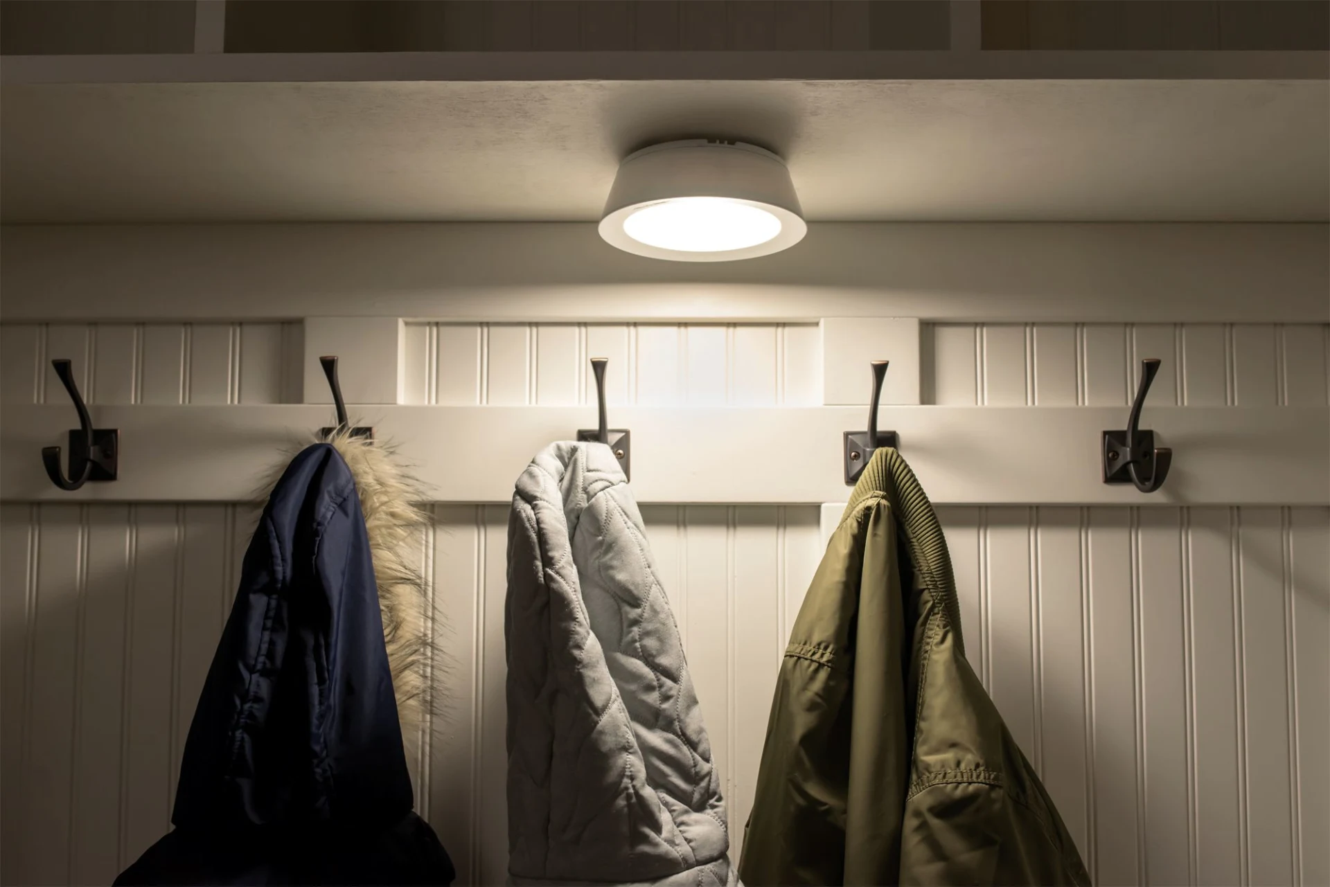Die Deckenleuchte wird mit 4 Batterien (BABY C; nicht im Lieferumfang enthalten) betrieben. Der Tageslicht- und Bewegungssensor schaltet sich automatisch aus, um Batterie zu sparen. Bei durchschnittlich 8-10 Schaltungen pro Tag hält die Batterie ca. 1 Jahr.