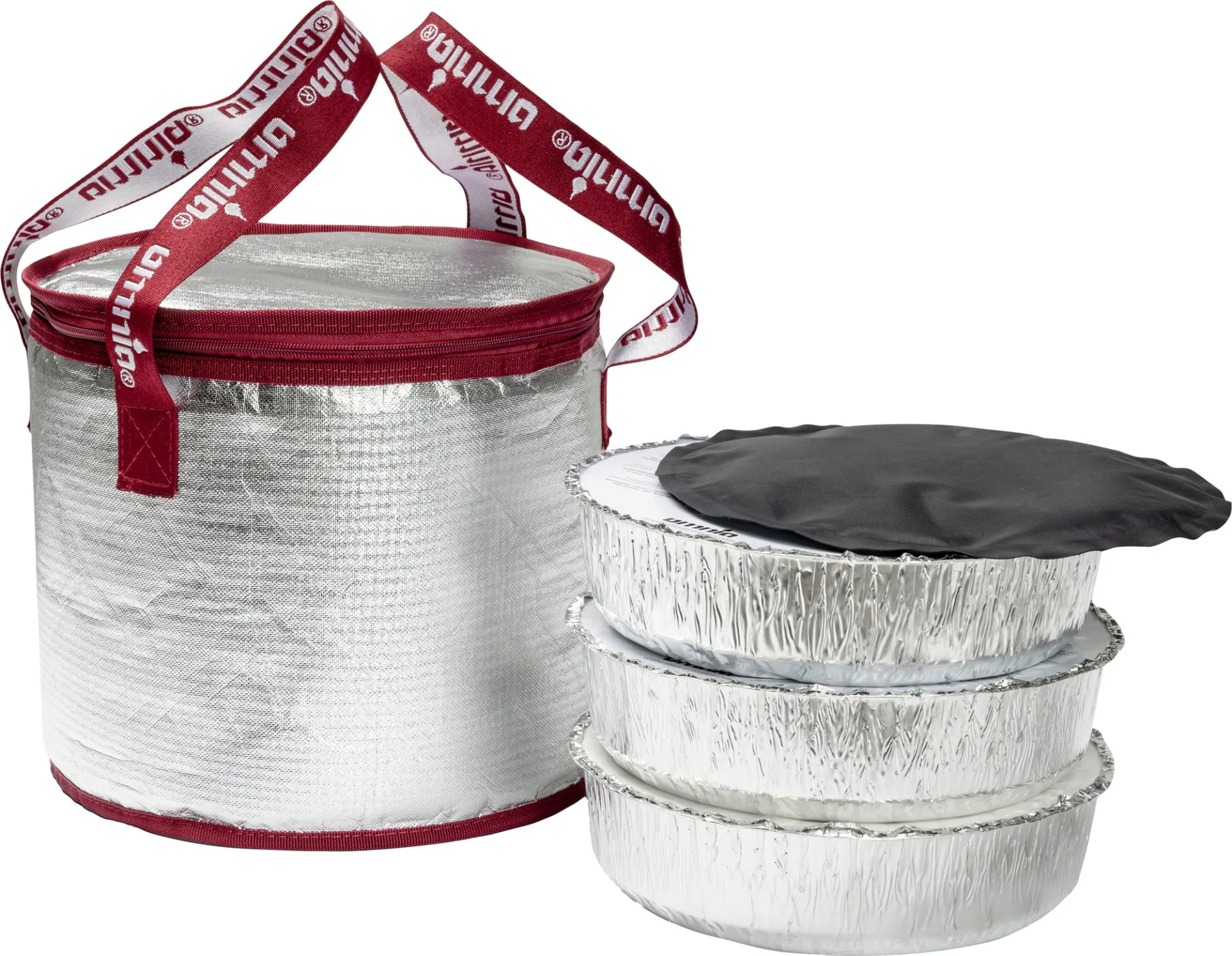 Eine praktische und stilvolle Kühltasche mit Griffen. Entwickelt, um bis zu drei Omnia Classic Aluminiumbehälter aufzunehmen. Der Kühlakku ist im Lieferumfang enthalten.