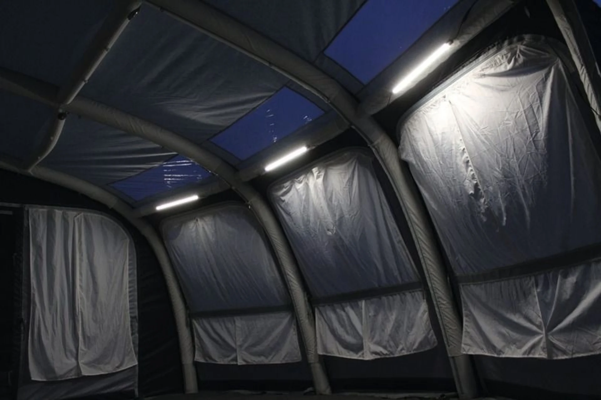 Le kit Lumi-Link Tube Light est un kit révolutionnaire d'éclairage de toit à trois LED, conçu pour être compatible avec toutes nos tentes familiales, nos auvents et nos auvents de caravane à partir de 2018. Il utilise un système de velcro facile à utiliser qui te permet de changer l'ambiance du soir dans ta tente/auvent pendant les nuits sombres en pleine nature. Trois options d'alimentation sont disponibles, dont une connexion au secteur, une connexion USB (nécessite un port de chargement et d'alimentation USB 12 V) ou une connexion à l'allume-cigare de la voiture.