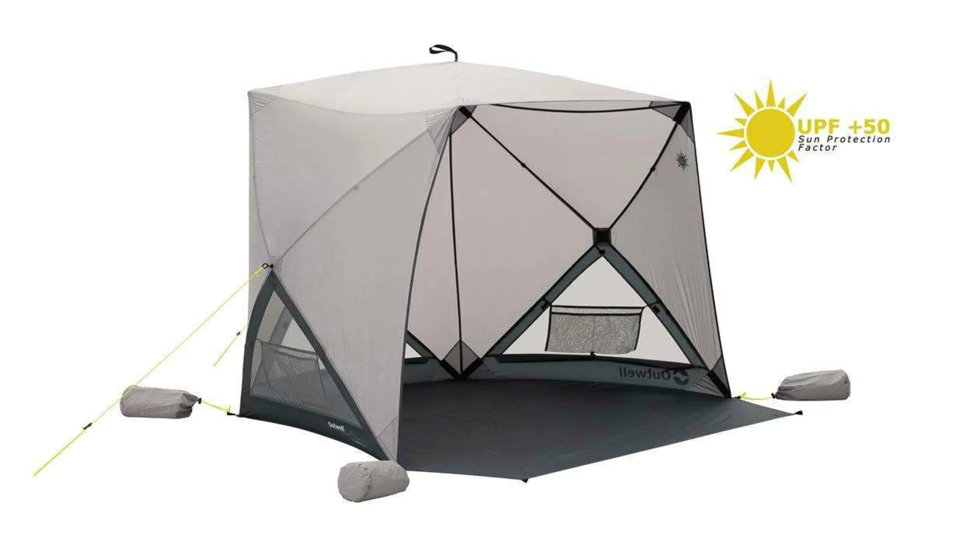 Avec un cadre solide en fibre de verre Duratec sous un tissu polyester 100% Outtex UV, l'abri de plage Formby facile à monter offre une ombre rapide et une protection contre le vent. Avec un tapis de sol cousu, des fenêtres en treillis, des rideaux et une hauteur maximale de 120 cm à l'intérieur de la tente, c'est un choix pratique pour les familles avec de jeunes enfants. Les poches en nylon à tous les coins peuvent être remplies de sable et enterrées pour assurer une stabilité supplémentaire.