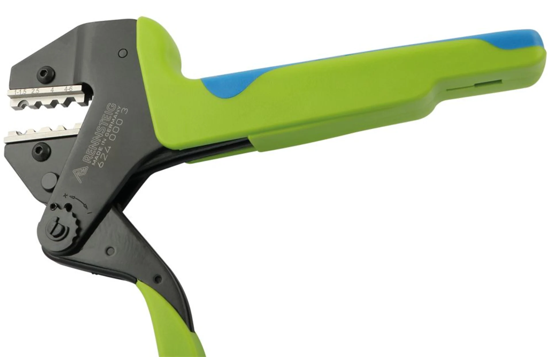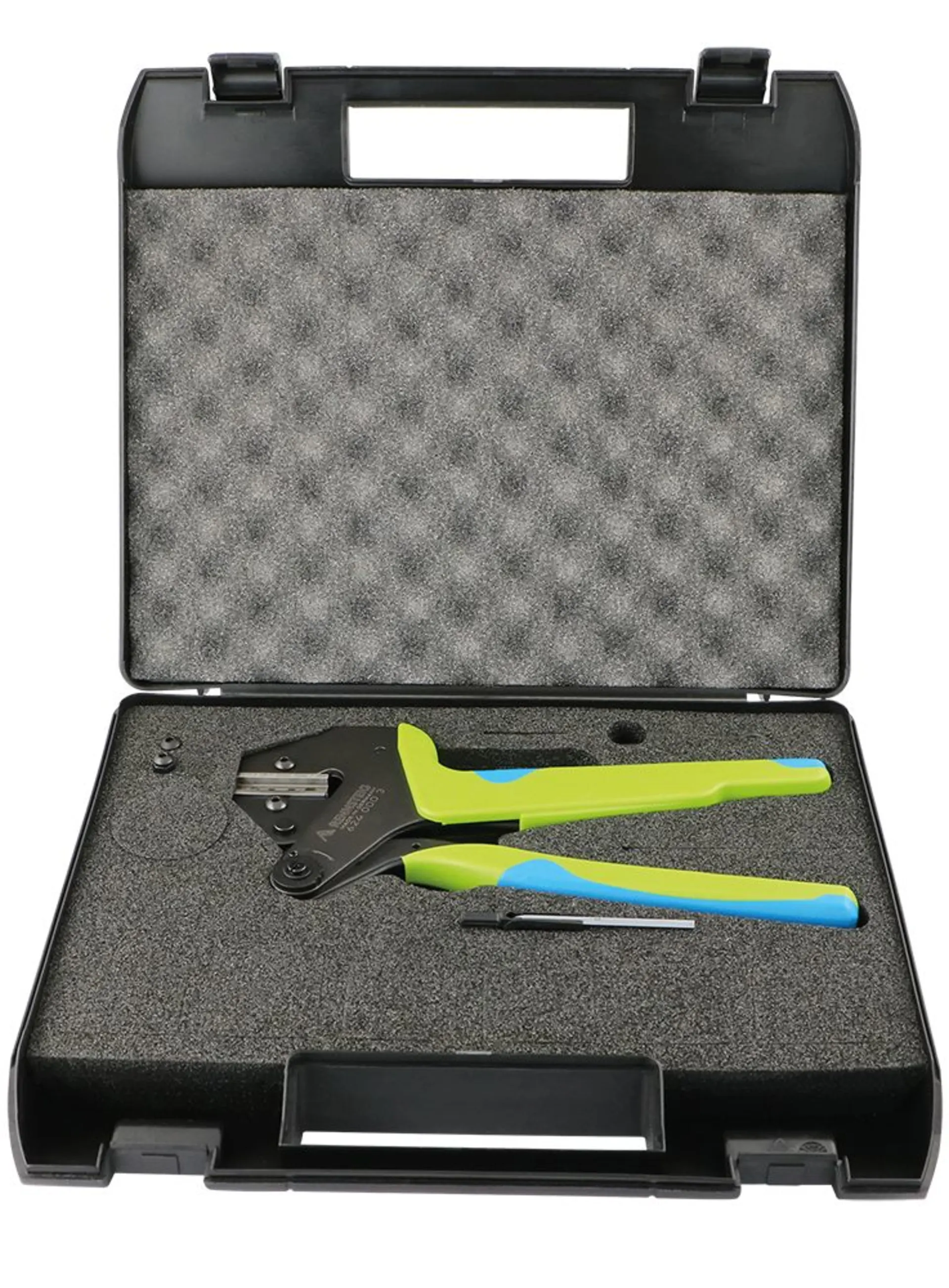 - Pince à sertir PEW12 - Jeu de sertissage 1.0-6.0mm2 - Sertissage : 1.0-1.5/2.5/4.0/6.0mm2 - Mallette plastique - pour contacts ABS, EBS & 15-polar - pour connecteurs de charge