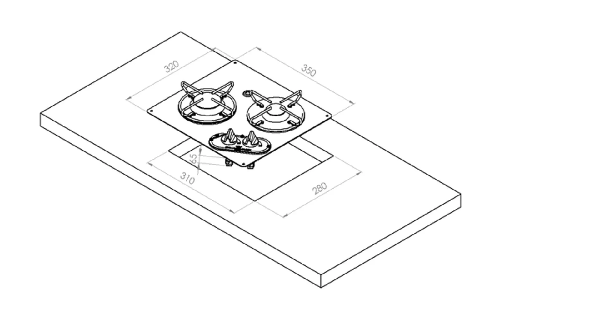 - Dimensions d'encastrement (LxP) : 330 x 300 mm