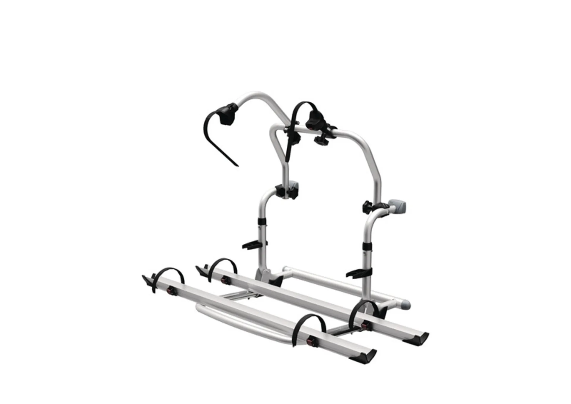 Série Pro. Porte-vélos conçu pour être monté sur la paroi arrière du camping-car. Le porte-vélos compact et classique pour tous les murs. La version courte de la série Pro se monte sous la fenêtre et permet d'ouvrir la fenêtre.