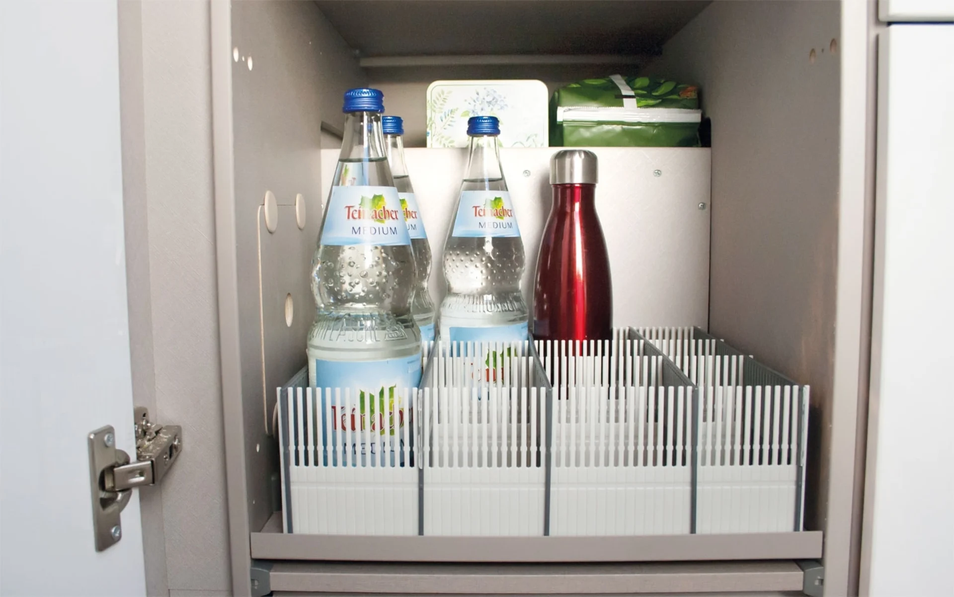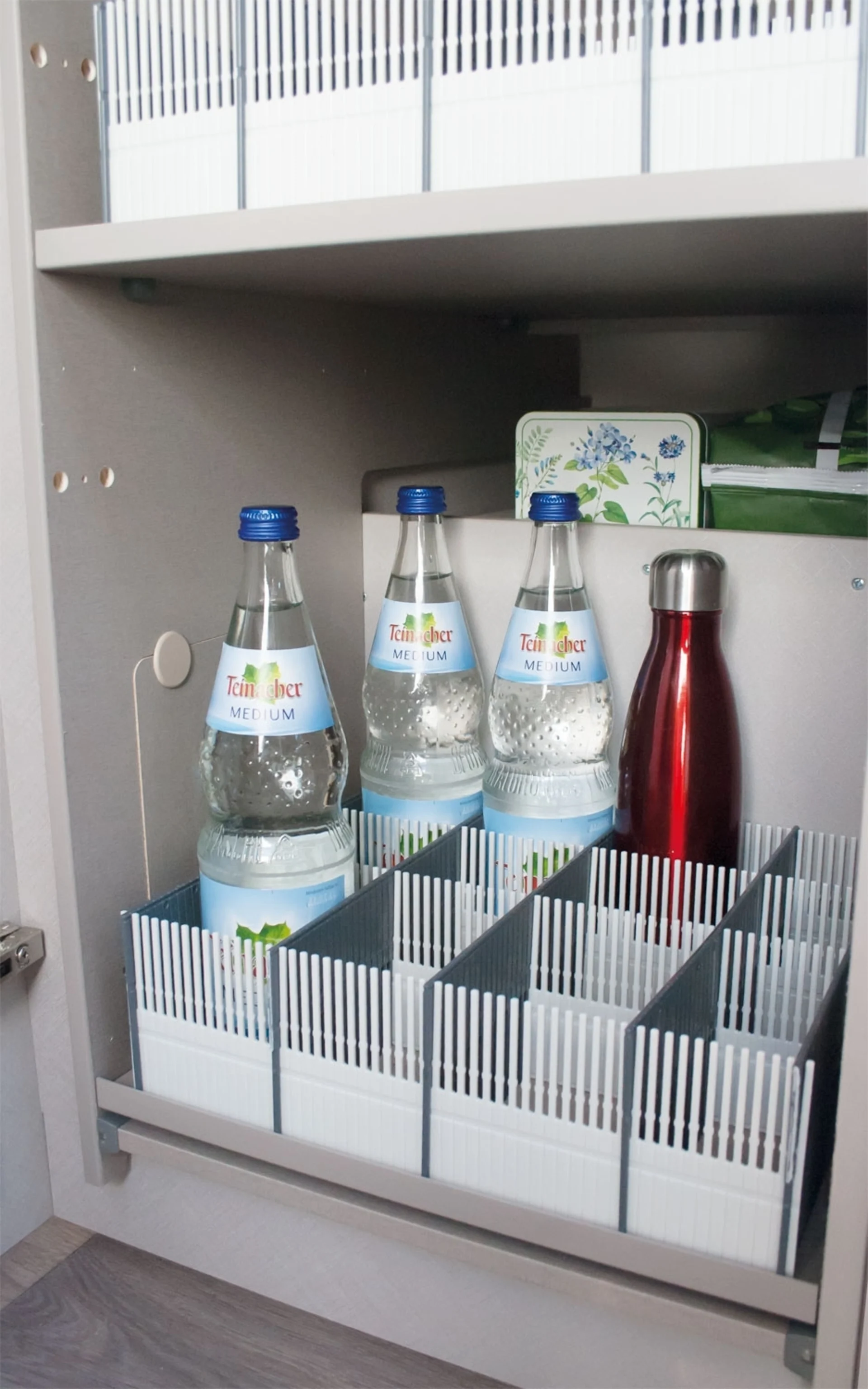Pour une utilisation variable des compartiments, insère simplement les barres de rangement 100 MAXXI les unes dans les autres.