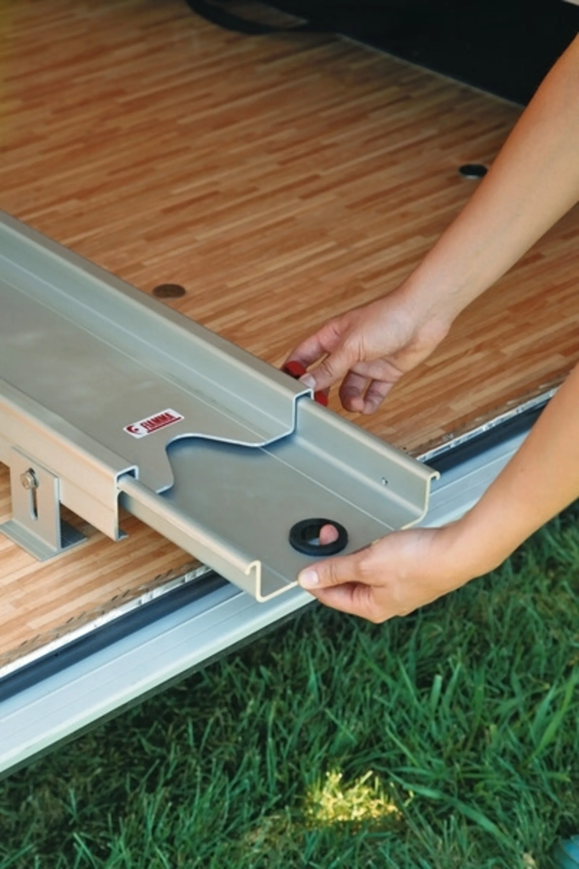Système de glissière composé de deux rails qui s'emboîtent l'un dans l'autre, idéal pour être installé dans les garages arrière des camping-cars. Facile à installer grâce au système de montage réglable en hauteur. Il se compose d'un rail de support (L 180 x l 16 cm) qui se monte dans le garage et d'un rail d'accès (L : 155 cm) qui se retire grâce à des roulettes coulissantes. Fabriqué en aluminium anodisé. Le rail est livré avec deux sangles solides pour pouvoir sécuriser le scooter pendant le trajet. Pour scooters/motos jusqu'à 200 kg.