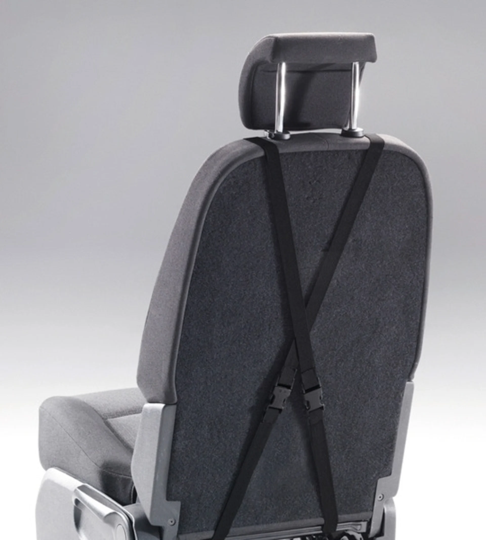 Avec un noyau de ressorts à lamelles pour plus d'aération et de soulagement. Avec entraînement intégré pour le dos. Utilisation dans tous les véhicules de voyage, y compris les sièges de voiture avec airbag latéral. Convient aussi aux chaises de bureau.