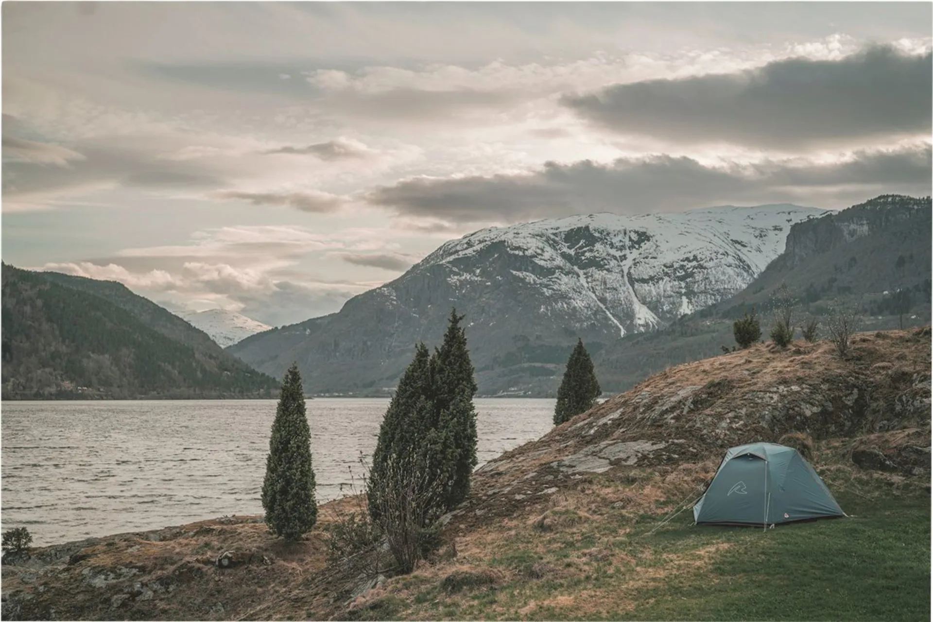 La combinaison d'un dôme et d'un court poteau de faîtage transversal offre un espace de vie, de cuisine et de rangement flexible avec deux vérandas et une hauteur et une largeur intérieures excellentes pour trois personnes. Le design comprend des options pour ouvrir les portes extérieures afin de permettre un accès facile et protégé, ainsi qu'une ventilation transversale et une vue magnifique sur l'extérieur, à l'abri du vent.