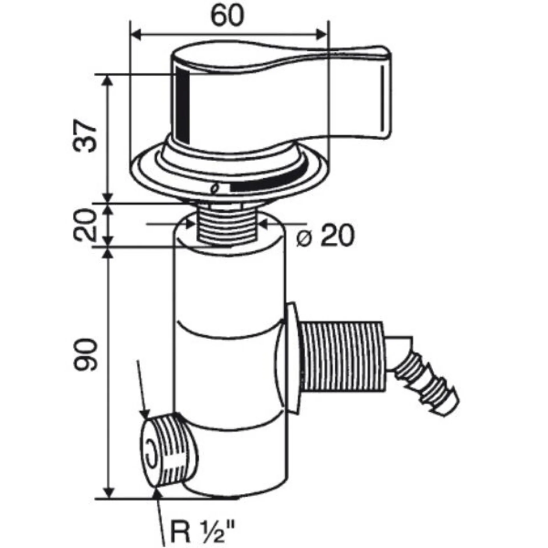 Raccord sous évier 1/2" pour la douche. Facilement réglable et très facile à utiliser. Course de rotation du levier de 90° seulement. Convient aux installations d'eau sous pression. Trou de Ø 20 mm