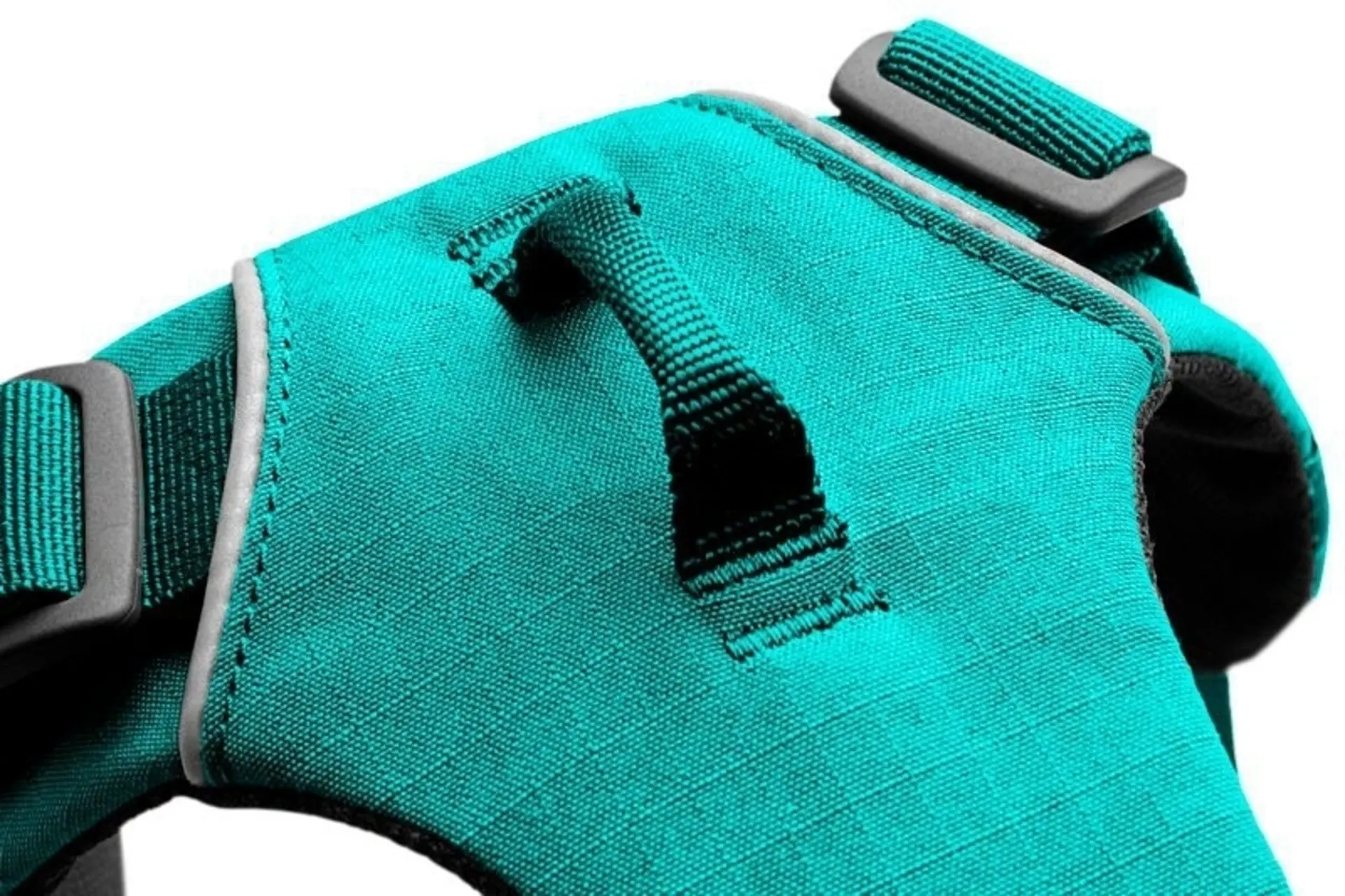 Harnais rembourré pour les aventures de tous les jours est facile à mettre. Deux points d'attache pour la laisse : un anneau en V sur le dos du chien et une boucle de tissu renforcée sur la poitrine pour un contrôle supplémentaire en cas de double attache de la laisse.