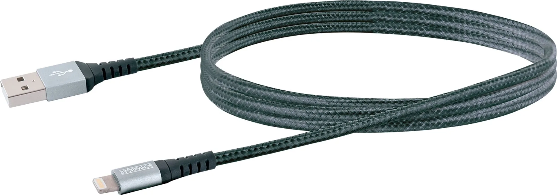 Ce câble de synchronisation et de chargement SCHWAIGER est conçu pour être utilisé avec un smartphone, une tablette, un appareil photo ou un powerbank. Il peut être utilisé pour synchroniser ou charger l'appareil. Pour cela, il est possible d'utiliser soit le bloc d'alimentation USB original, soit un adaptateur de charge universel. Le point fort de ce produit est la construction du câble avec une gaine intérieure spéciale en Kevlar combinée à une gaine extérieure en nylon, ce qui rend ce câble extrêmement résistant à la déchirure et presque indestructible.