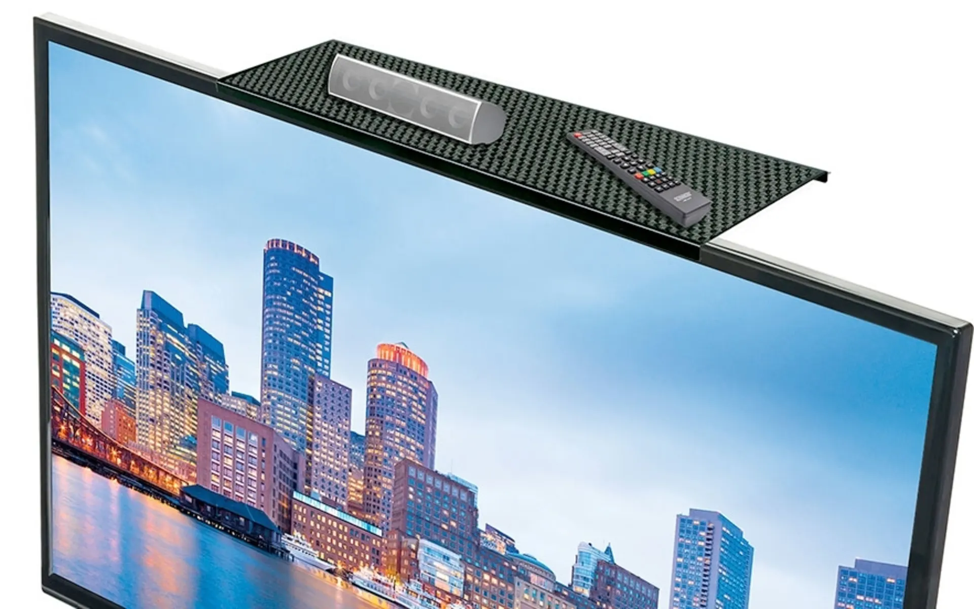 Le TV Topper révolutionnaire peut être monté individuellement sur presque tous les écrans plats, quelle que soit leur taille, sans outils.