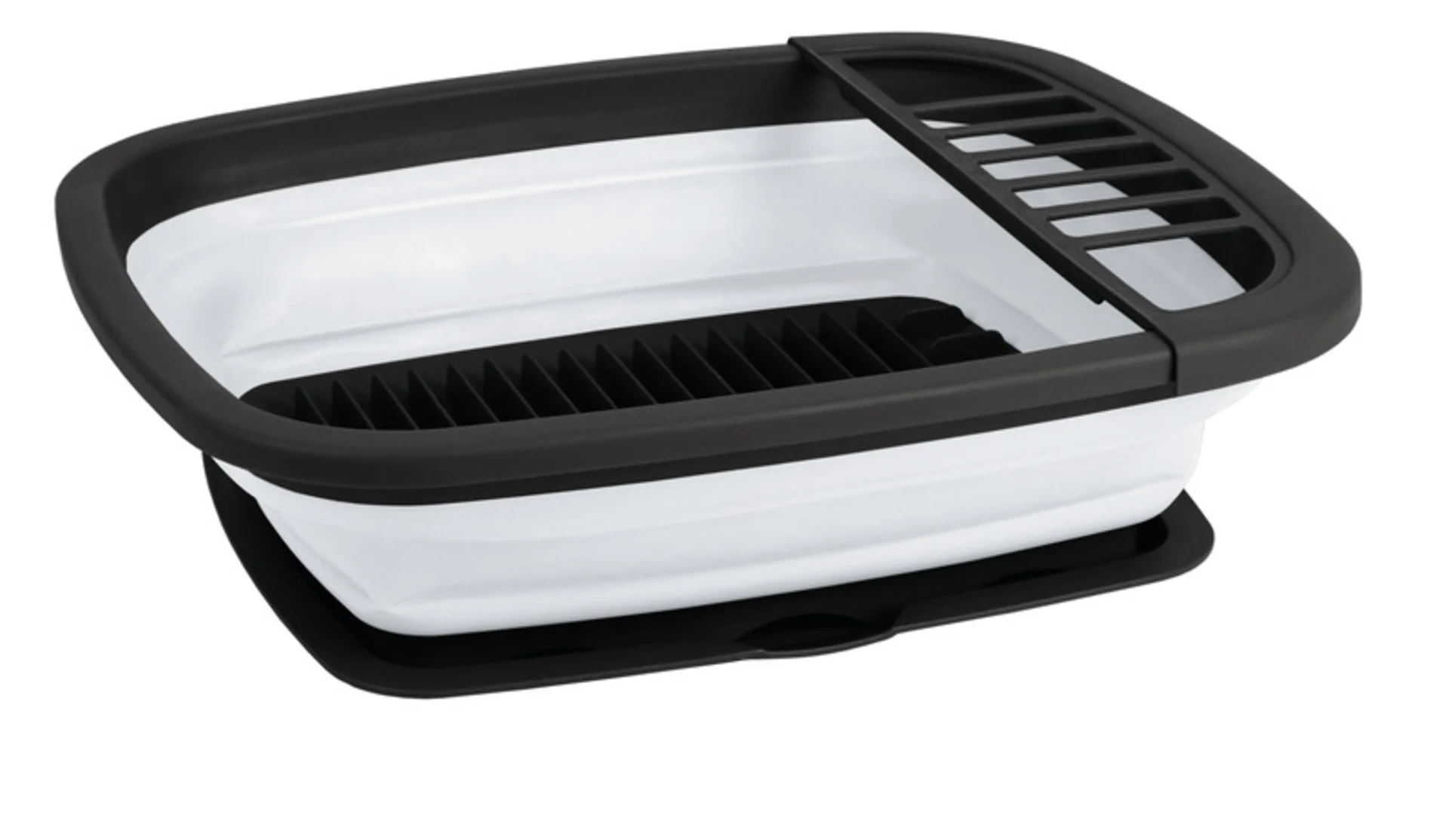 L'égouttoir pliable en PP/TPR est adapté à la vaisselle, aux couverts, aux ustensiles de cuisine, etc.même en taille 50x42x16cm pour plus de 2 personnes. L'égouttoir a des séparations pratiques pour sécher les couverts, les assiettes, les tasses, etc. L'égouttoir séparé peut également être utilisé comme plateau. La combinaison de couleurs blanc/gris s'adapte à tous les camping-cars/caravanes et est bien sûr aussi un accessoire de cuisine peu encombrant à la maison.