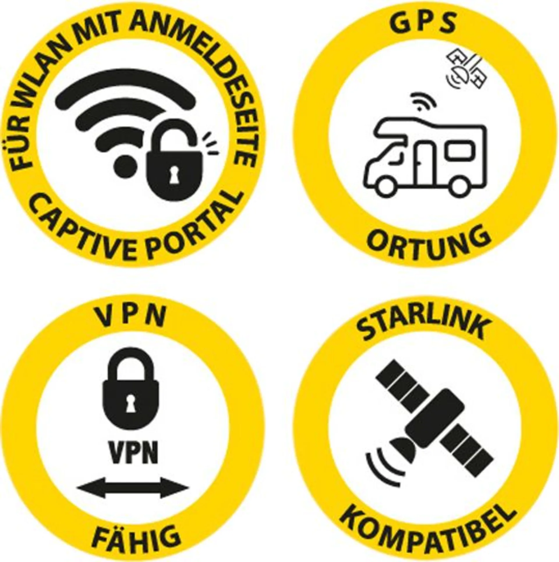 Der Selfsat MWR 4540 Router ermöglicht eine stabile Internetverbindung im Wohnmobil oder Wohnwagen, über 4G LTE und WLAN-Signale. Er verfügt über zwei SIM-Karten-Einschübe, unterstützt GPS-Ortung und ist kompatibel mit Starlink-Antennen. Durch die Verbindung zu Campingplatz-WLANs mit Anmeldeseite (Captive Portal) und die VPN-Fähigkeit, z. B. zum Streamen im Ausland, bietet der Router vielfältige Funktionen. Die Außenantenne sorgt für stabilen Empfang, auch bei abgeschirmten Fahrzeugen, und ist staub- und wasserdicht. Die Bedienung erfolgt über QR-Code oder WLAN-Namen und Passwort, eine separate App ist nicht erforderlich.