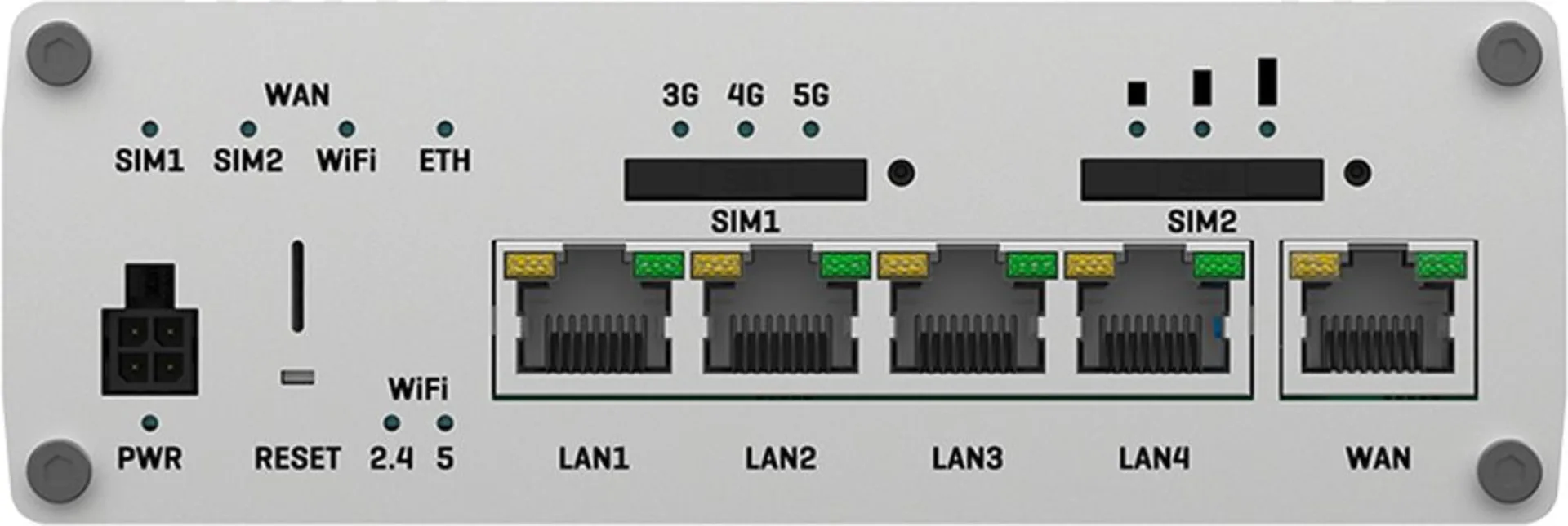 - Ethernet Schnittstellen: 1 x WAN, 4 x LAN RJ45