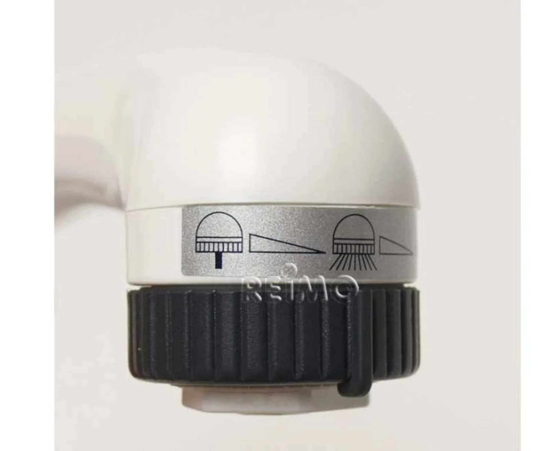 valve à 3 voies sur la tête. Réglages : Arrêt, douche, jet. Quantité d'eau réglable. Avec rosace encastrée et 1,5 m de tuyau. Raccord 1/2", perçage Ø 26 mm.