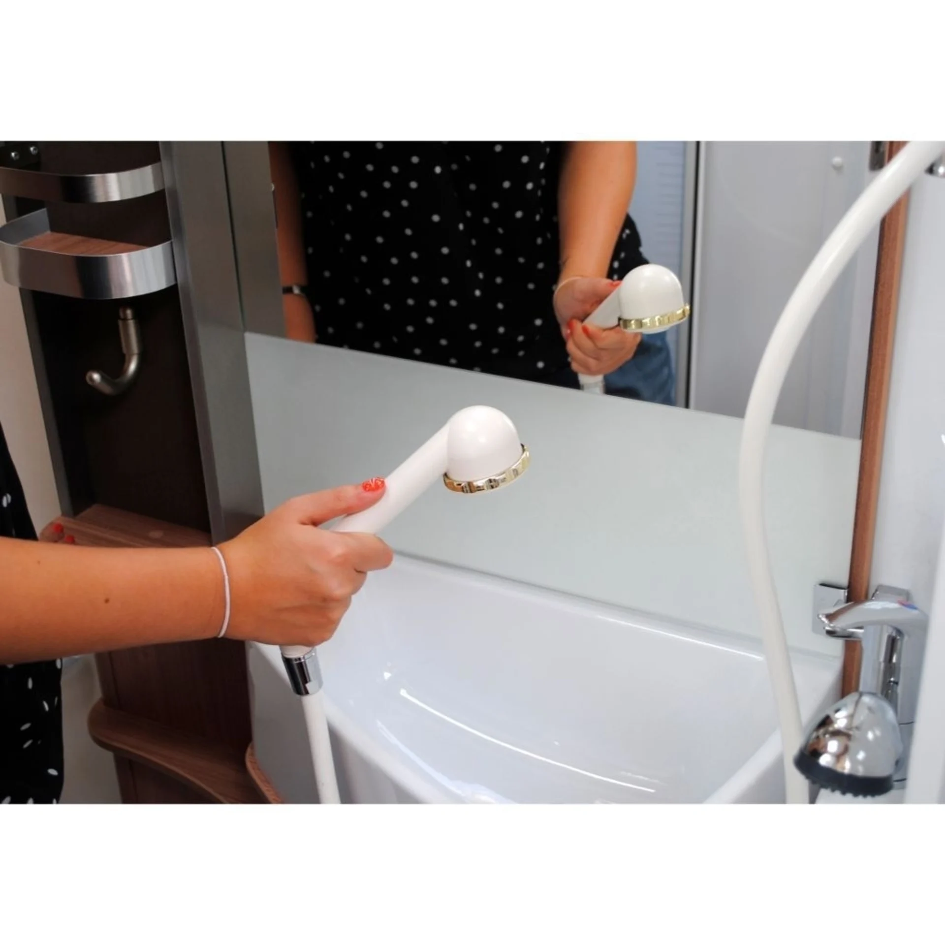 Comprend: Pomme de douche, tuyau de 1,5 m, support mural et adaptateur. Raccord : 3/8".