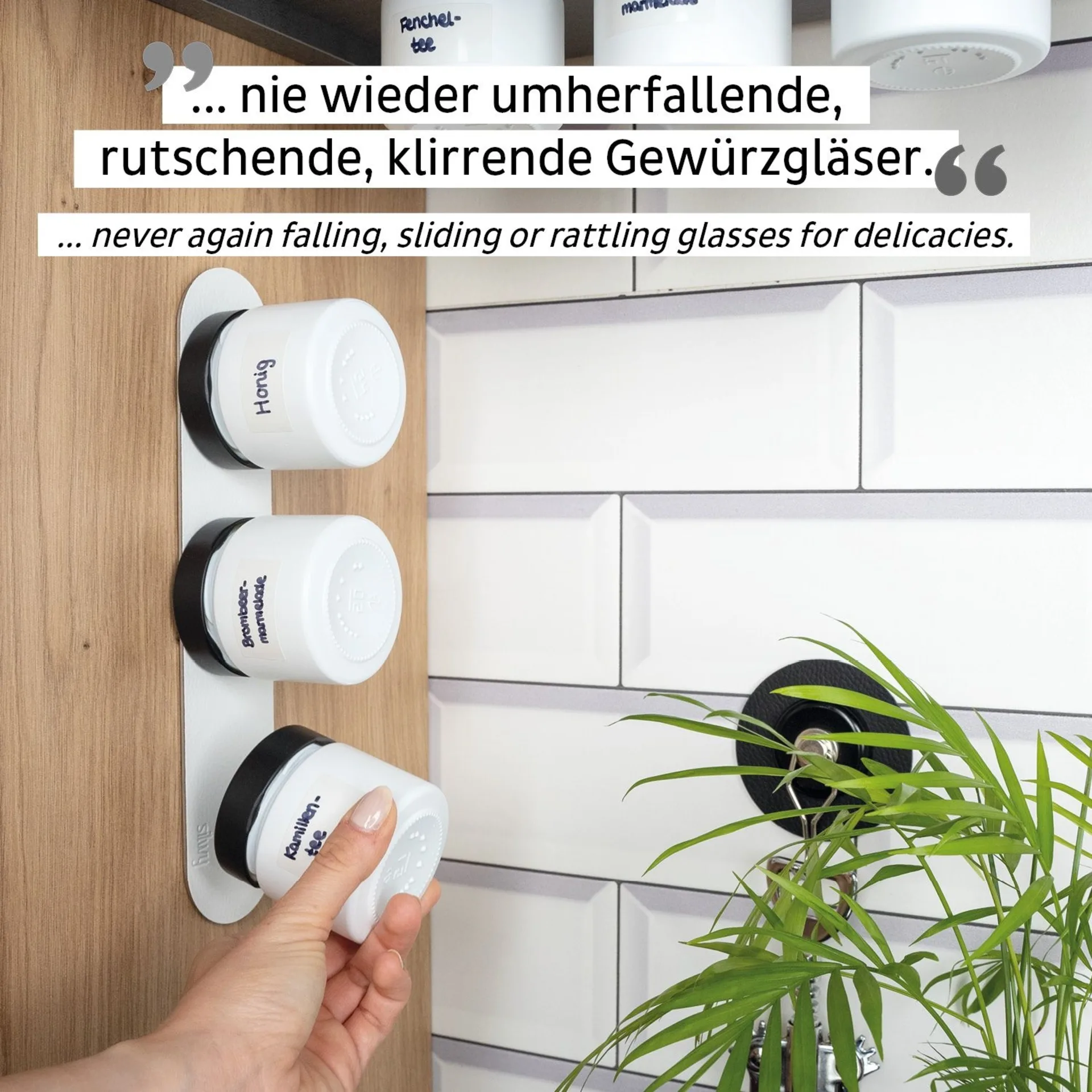Lot de 3 pots magnétiques d'épicerie fine BLANC (125 ml chacun) + 1 barre métallique de 25 cm WHITE