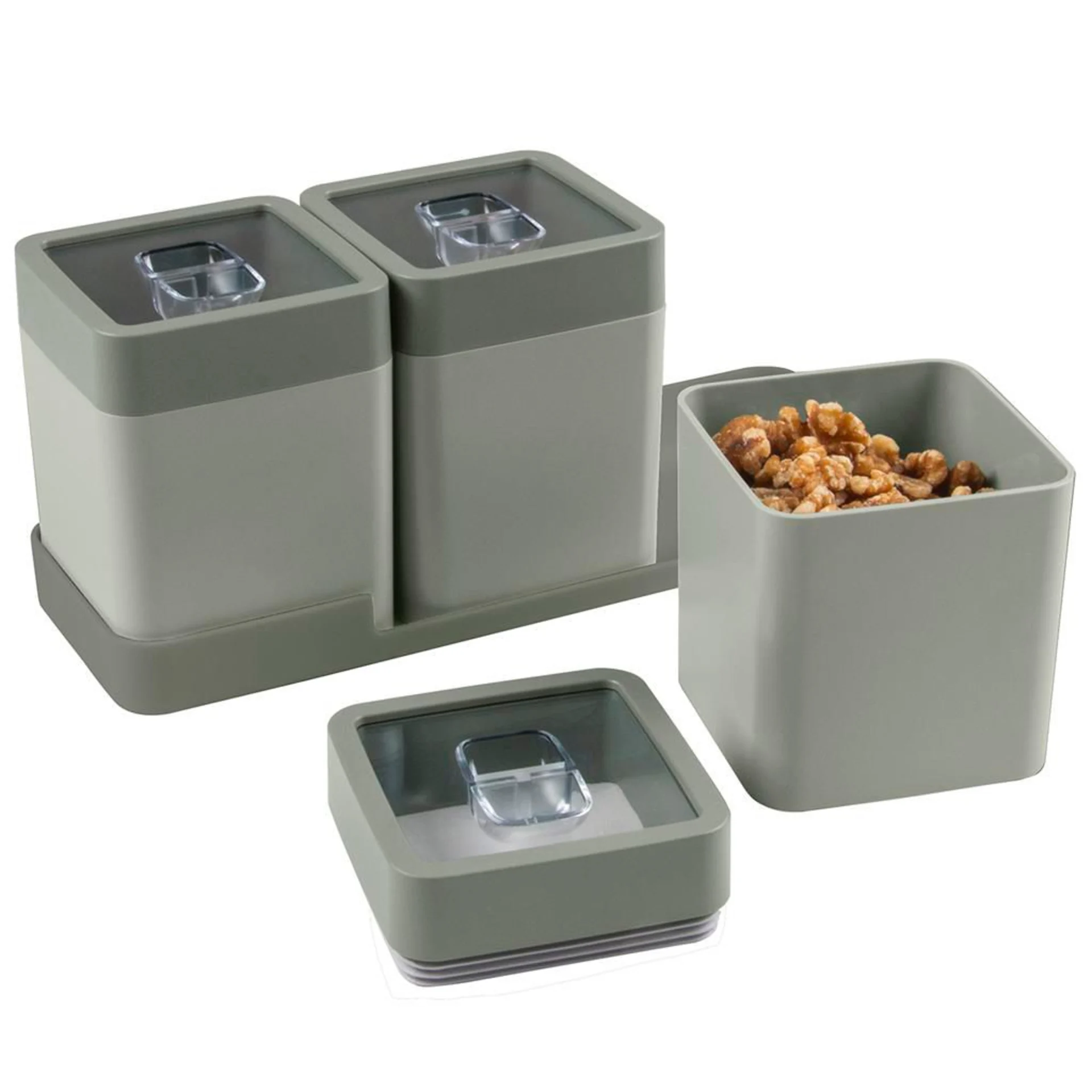 Sind Sie auf der Suche nach praktischen, aber auch schönen Aufbewahrungsbehältern für Ihre Trockenprodukte? Das Sigma home Dry food set (3 x 0,6 Liter Kanister) ist funktionell und dank seines trendigen und eleganten Designs ein echter Blickfang in der Küche. Die Sigma Home Vorratsdosen haben einen speziellen Dichtungsring, der garantiert, dass Ihre Lebensmittel frisch bleiben und luftdicht gelagert werden. Das Vorratsdosenset enthält ein Tablett, in dem die Dosen übersichtlich angeordnet sind. Darüber hinaus passt das Tablett mit den Dosen perfekt in die gängigsten tieferen Schubladen. Die Sets sind in den Farben Blau, Grün und Weiß erhältlich.