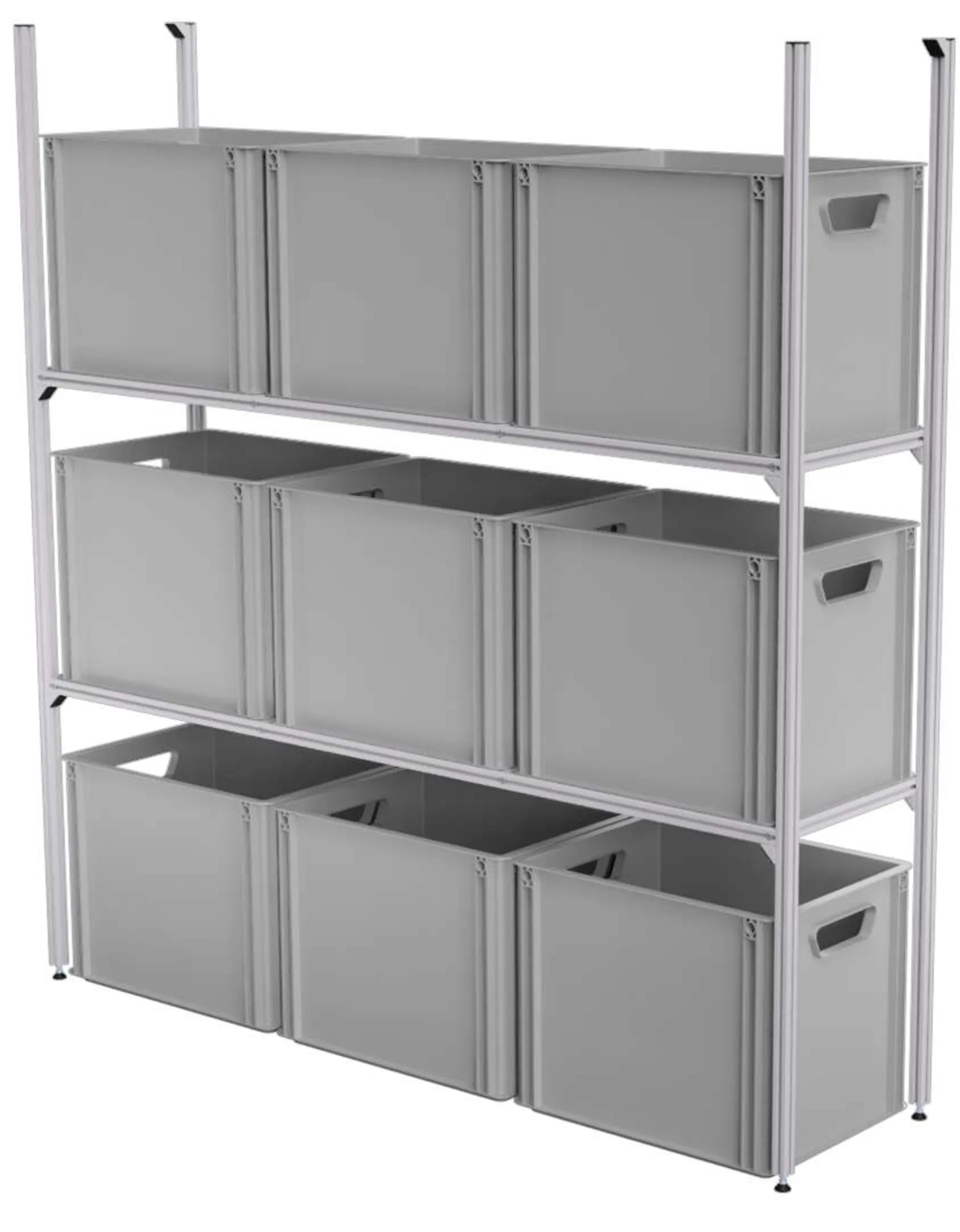 L'étagère en profilé d'aluminium est vissée entre le sol et le plafond du garage arrière. Les deux étagères peuvent être réglées à n'importe quelle hauteur, ce qui permet de créer une étagère personnalisée, selon les besoins de ton garage arrière. Les EuroBox (non incluses) s'enclenchent dans l'étagère et sont ainsi automatiquement sécurisées pendant le trajet. Les étagères acceptent les EuroBox (bacs Euronorm) de 40 x 30 cm. Les montants peuvent être adaptés à la hauteur du garage arrière à l'aide d'une scie à métaux.