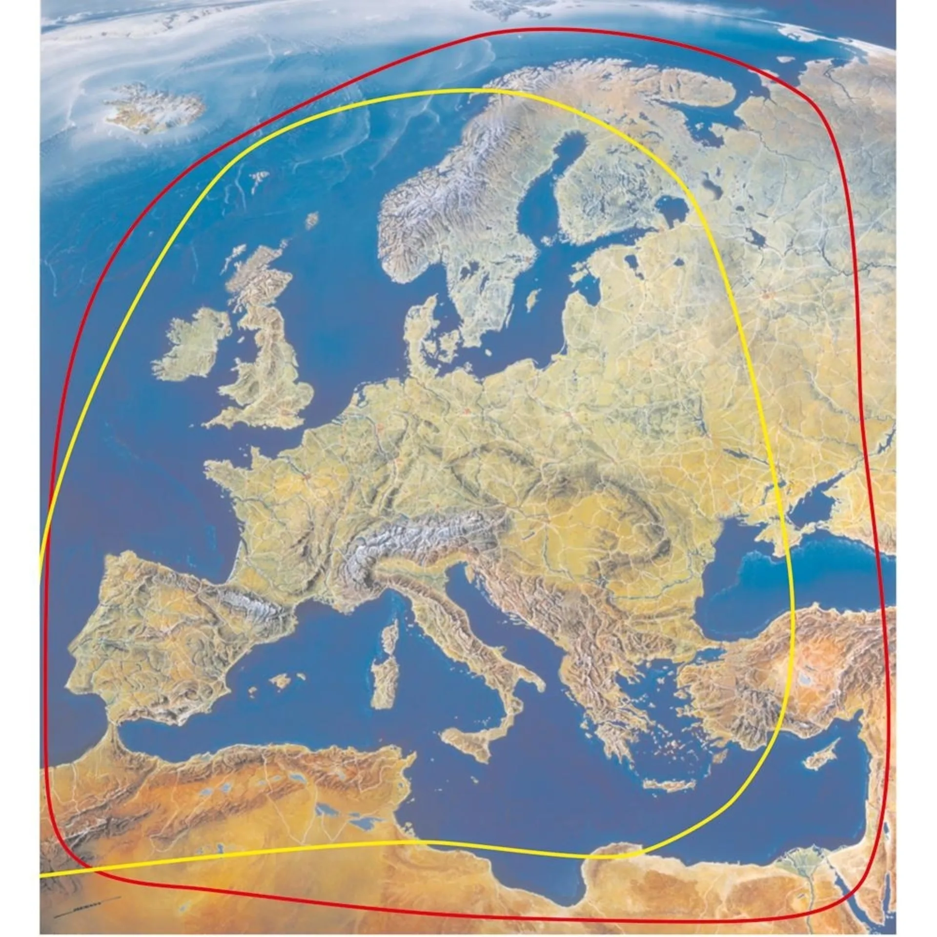 Europe, Afrique du Nord, Proche-Orient. L'Oyster V® convainc par sa portée maximale. Le miroir d'antenne de 85 cm de diamètre y est pour beaucoup. Les portées de réception indiquées montrent les portées centrales approximatives. La portée des différents programmes n'est pas sous le contrôle de ten Haaft. Les opérateurs de satellites respectifs sont exclusivement responsables des portées réelles. Il n'est pas possible de garantir la continuité des portées de réception indiquées ici pour l'avenir.