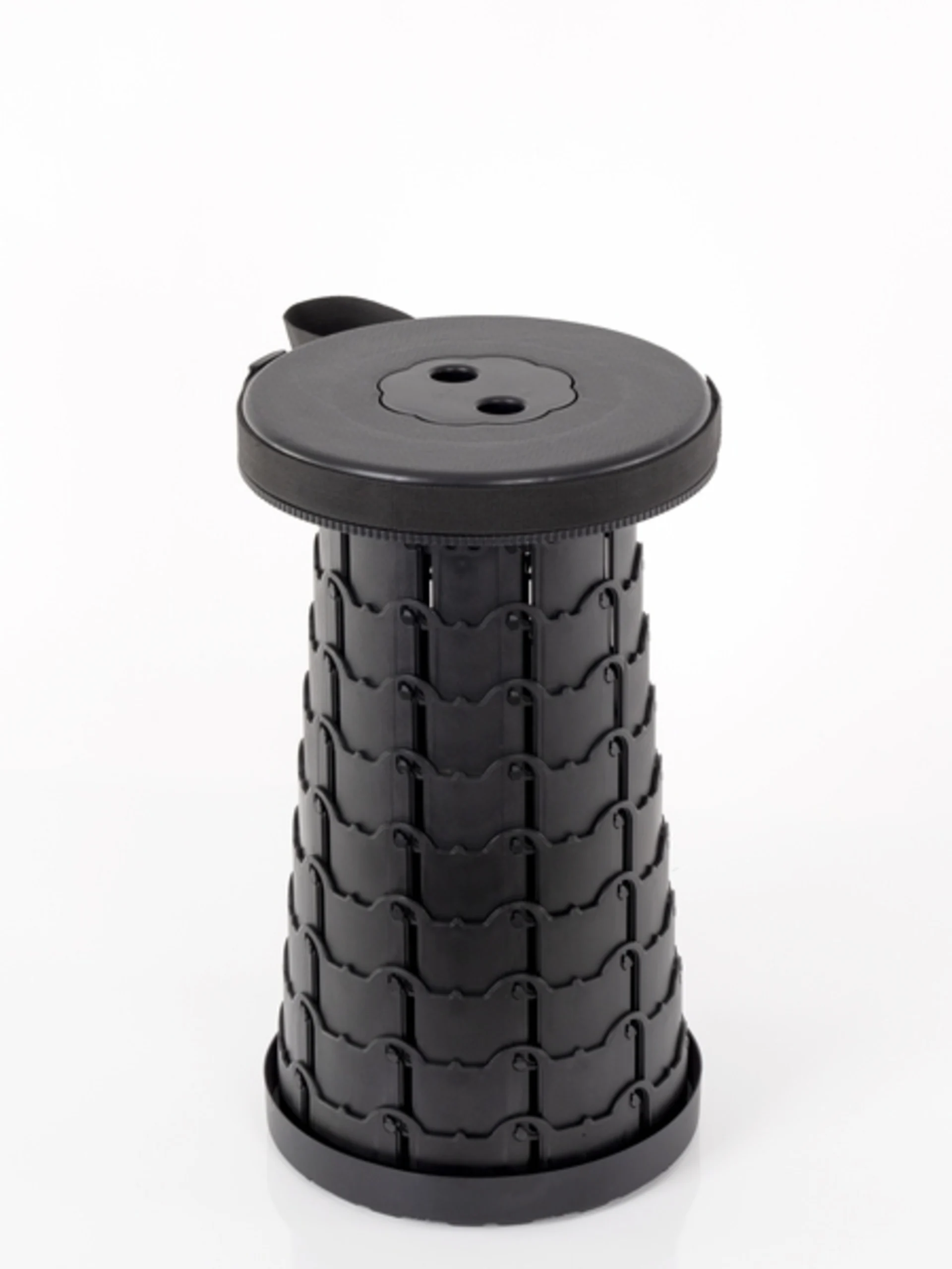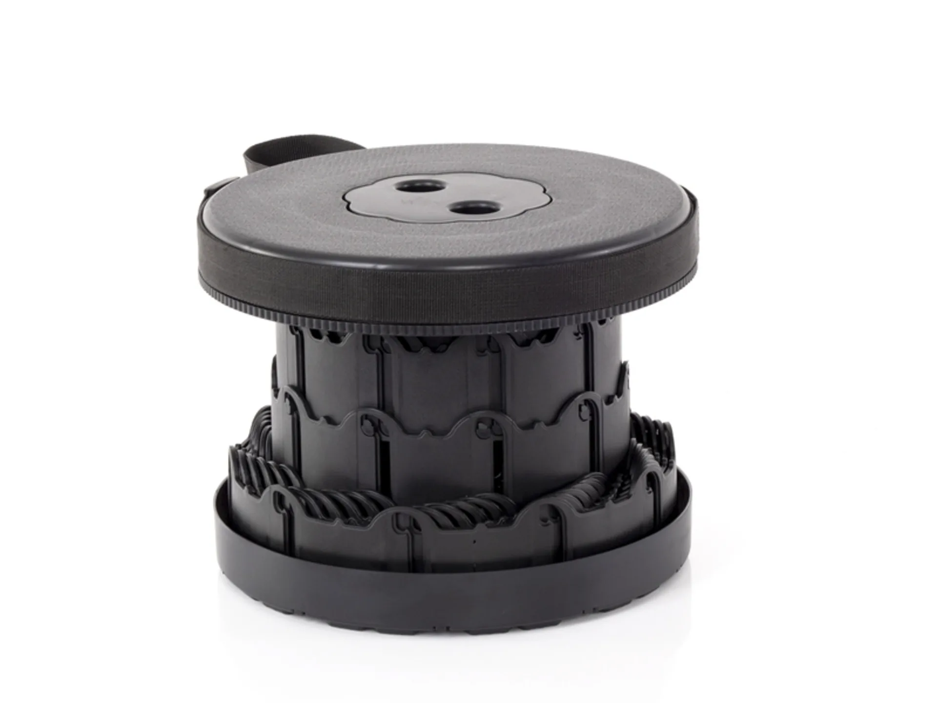 Bodo - le tabouret de camping réglable en hauteur et extrêmement léger avec une très petite taille de rangement. Facile à transporter grâce à la dragonne. L'encoche supplémentaire pour les doigts facilite l'ouverture et la fermeture facile et rapide.