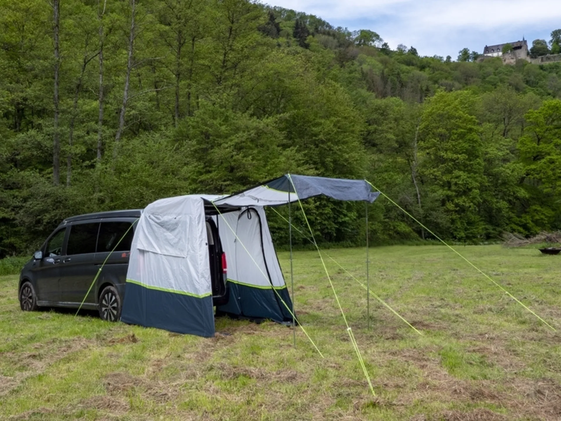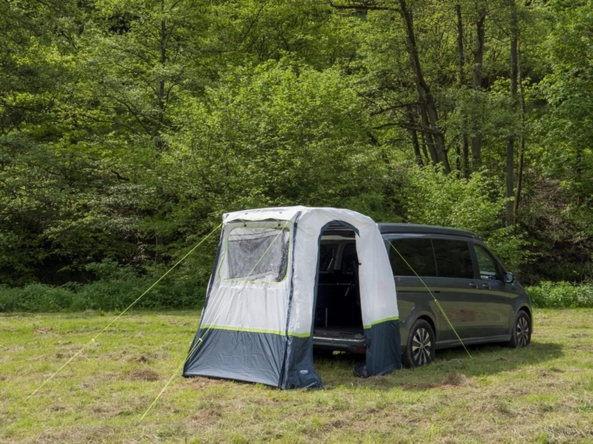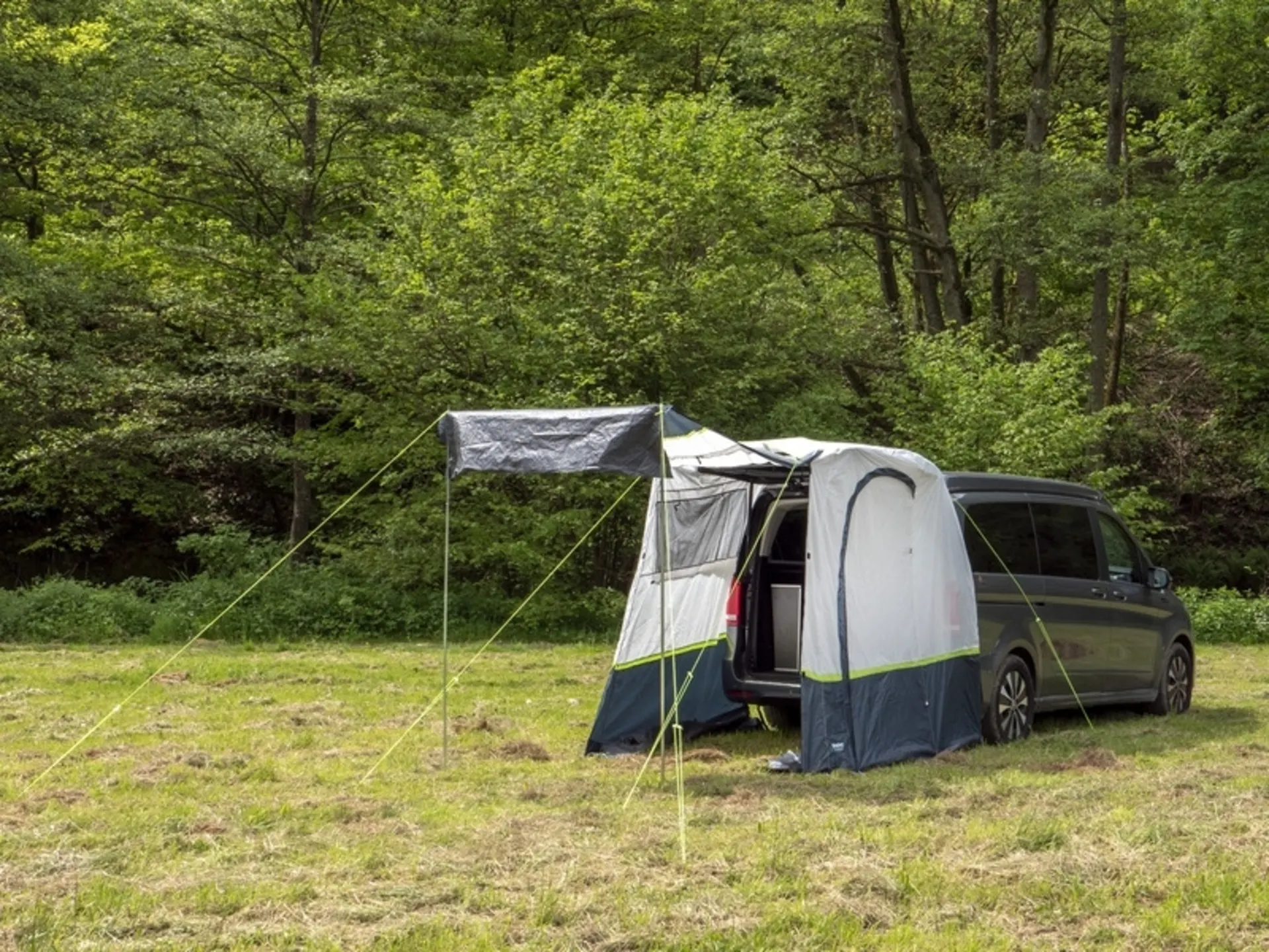 Pas d'armature, une petite taille de rangement et un montage facile font de la tente arrière "Update" le choix parfait pour tous les conducteurs de fourgons. Il suffit de l'enfiler sur le hayon et il y a déjà de la place pour un lit de camp, un vélo ou tout simplement pour avoir plus d'air frais dans le véhicule. Paroi arrière relevable en tant que voile pare-soleil. Fenêtre et entrée dans la paroi latérale. Pour plus de lumière, la fenêtre en PVC dans le toit.