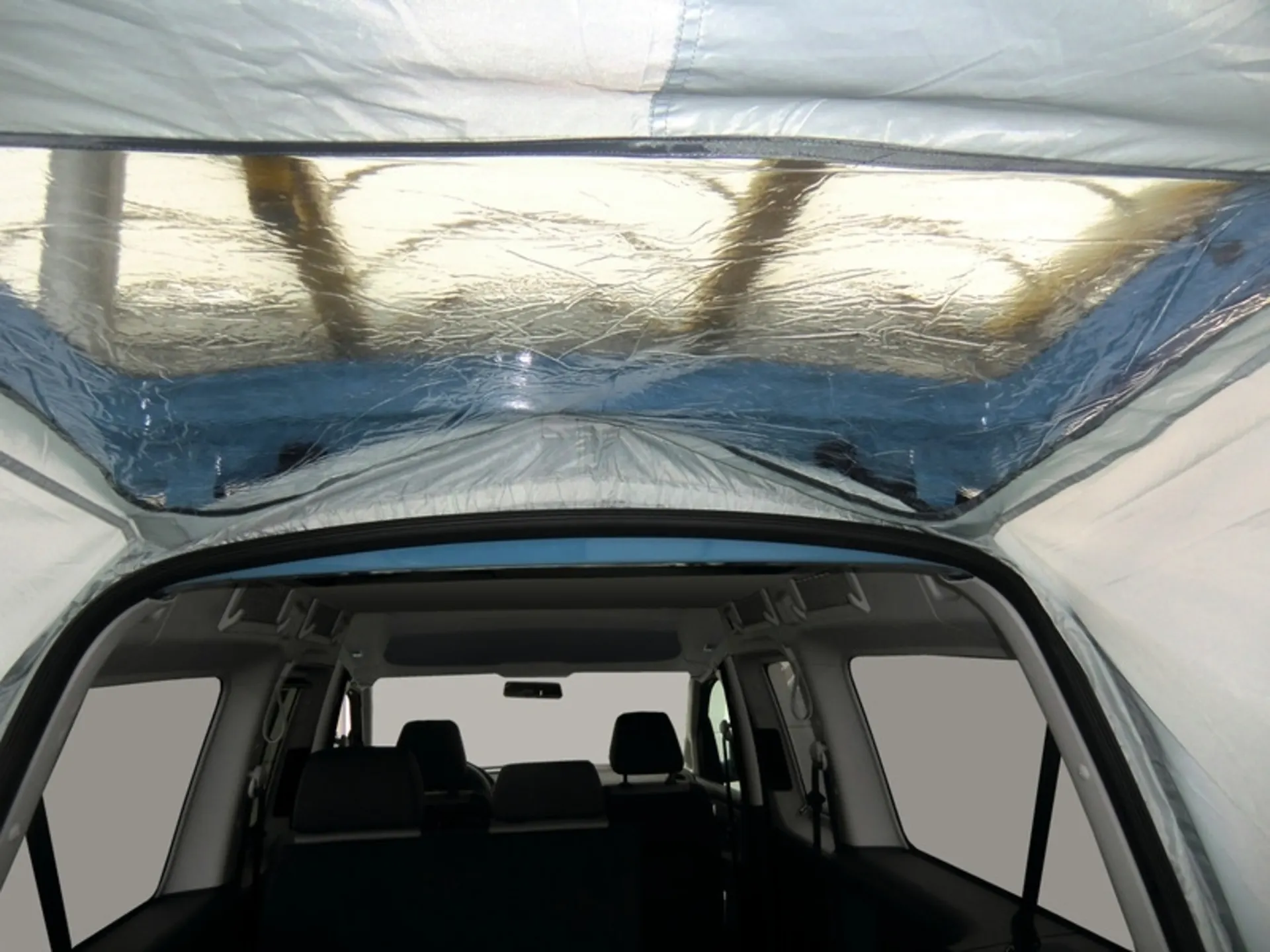 La tente du hayon se monte sous le hayon avec des sangles cousues, le velcro et l'étanchéité avec la carrosserie la rendent pratiquement étanche à la pluie. La paroi arrière peut être installée comme une porte ou un auvent. Eclairage de l'intérieur même lorsque la porte est fermée grâce à la lucarne dans le toit. Parfaite pour agrandir l'espace du minicamper, pour un lit de camp compact, un vélo, comme tente de douche ou de vestiaire. Pas d'armature, poids et dimensions réduits.