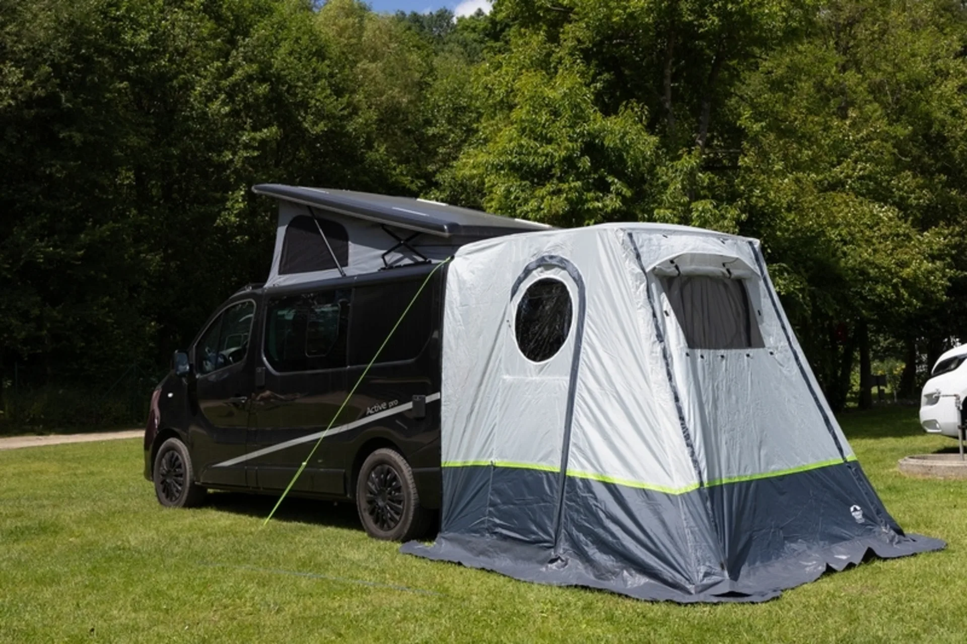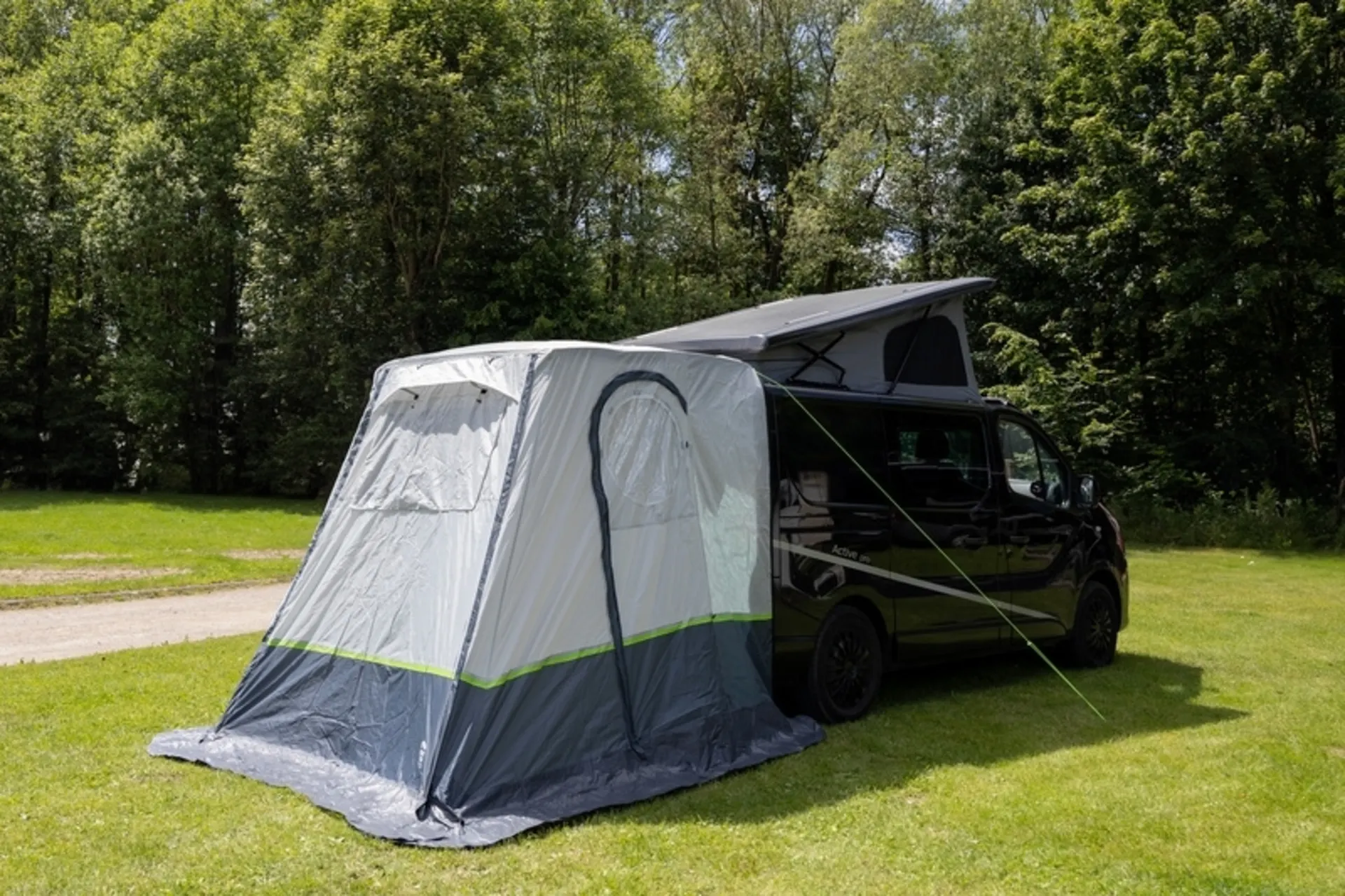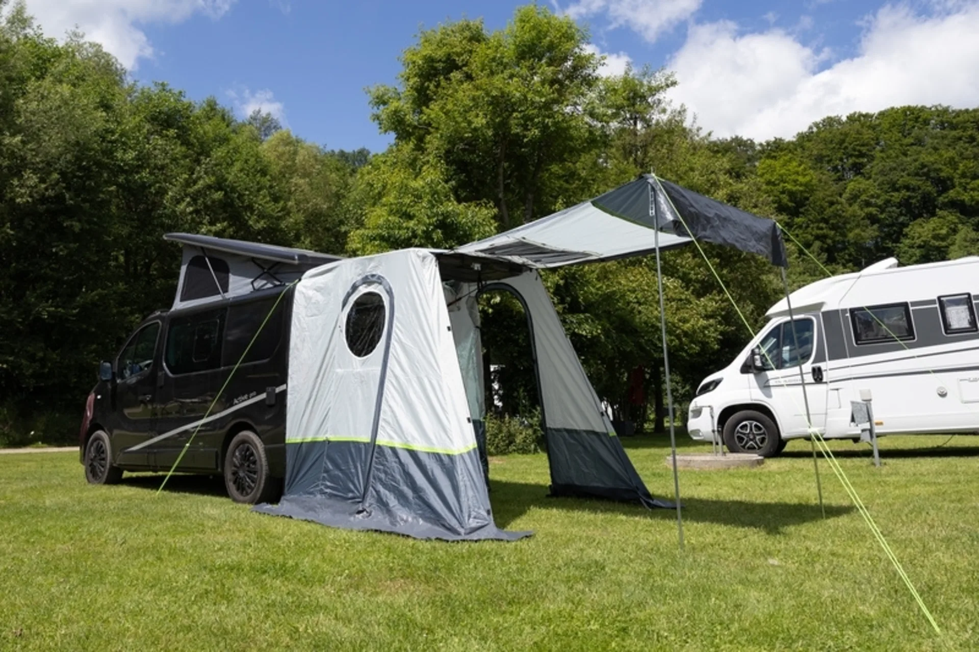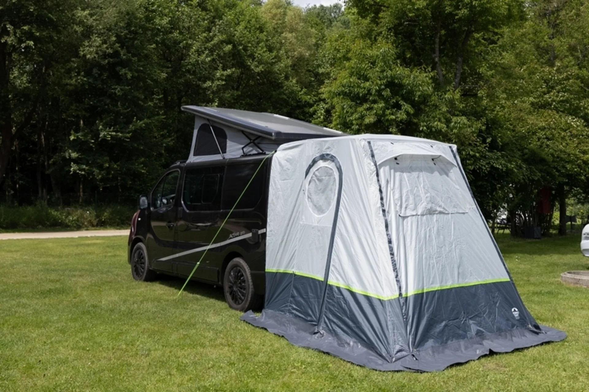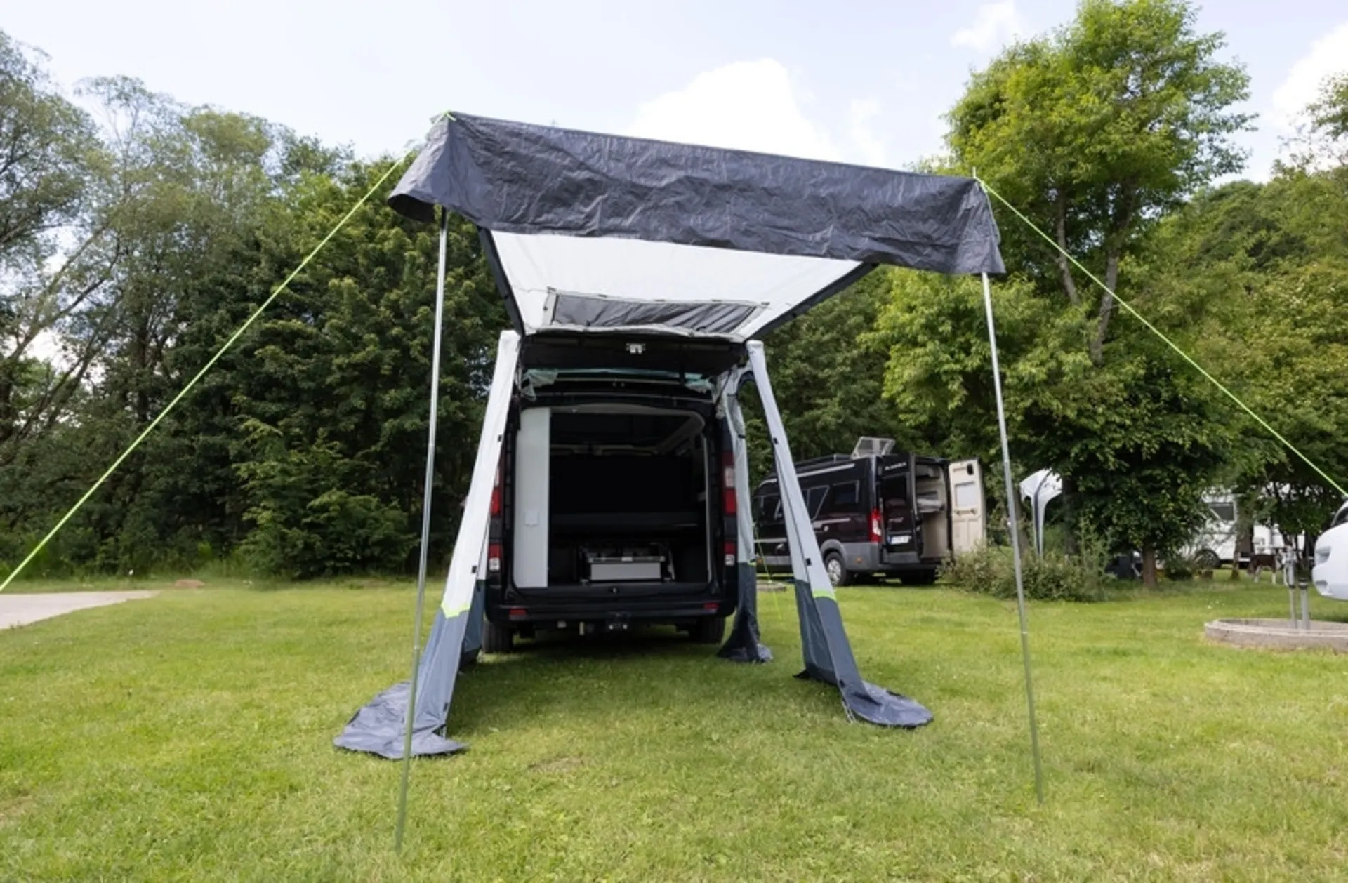 Avec un espace intérieur particulièrement grand, pour un lit de camp, des vélos ou autres.Il suffit de tirer la tente arrière sur le hayon ouvert et de la fixer au sol. La paroi arrière avec fenêtre moustiquaire peut aussi être utilisée comme voile d'ombrage.La tente arrière est aussi utilisable pour Citroën Spacetourer, Jumper et Campster, Peugeot Traveller et Expert, Toyota Proace (tous à partir de l'année de fabrication). 2005) ainsi que l'Opel Vivaro C et Zafira Life (à partir de l'automne 2019) Matériel : polyester ripstop 190T, revêtement anti-UV, colonne d'eau : 2000mm