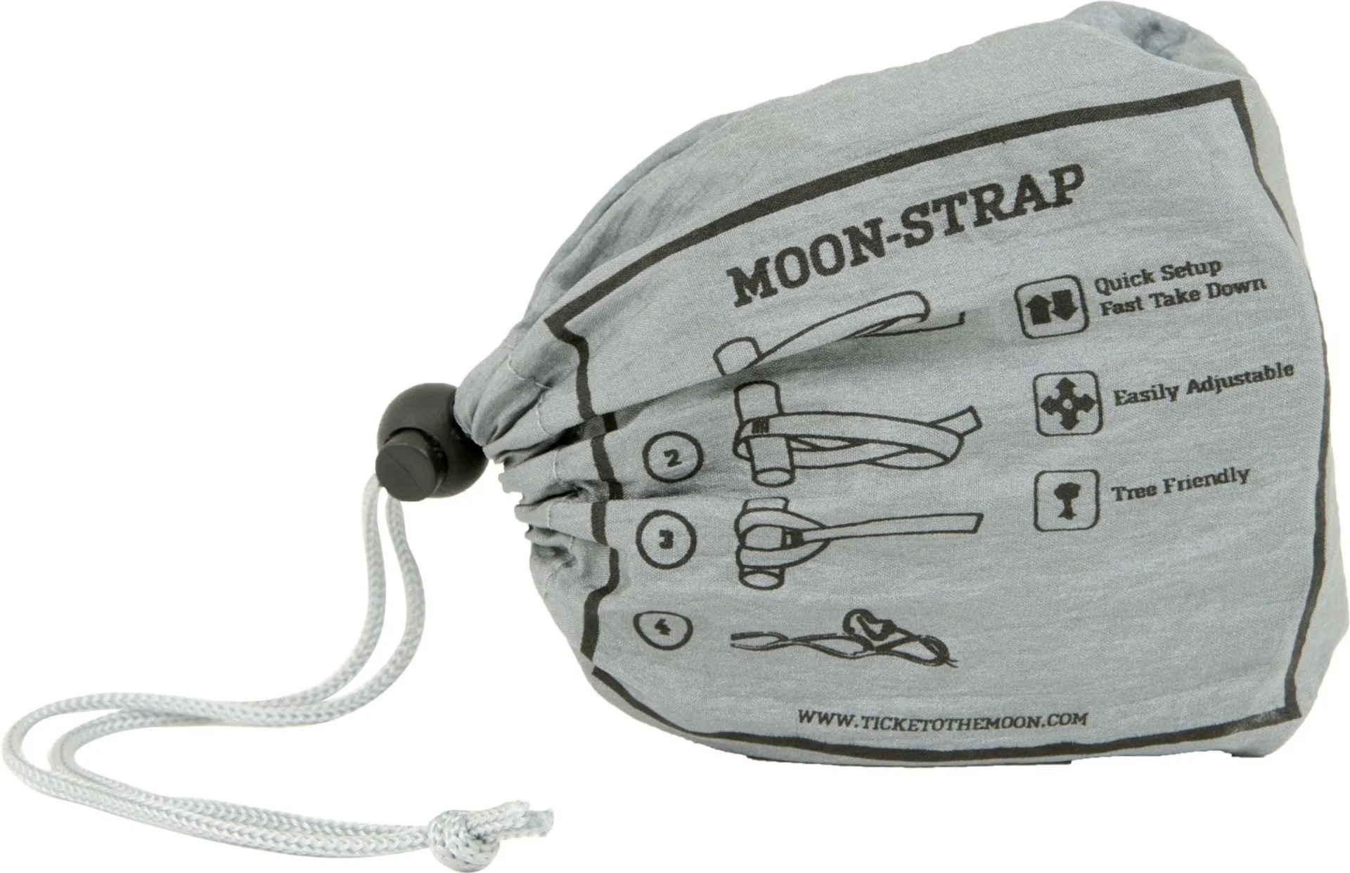 Tu préfères passer ton précieux temps libre dans ton hamac plutôt que de l'accrocher ? Tu n'as pas envie de traîner des cordes encombrantes et tu veux que ça tienne sur n'importe quelle surface ? Alors les Moonstraps sont exactement ce qu'il te faut. En comparaison avec d'autres dispositifs de suspension, ils se distinguent par une charge de rupture de >700kg et, grâce à leur petite taille de rangement, ils trouvent même leur place directement dans le sac de transport de ton hamac.