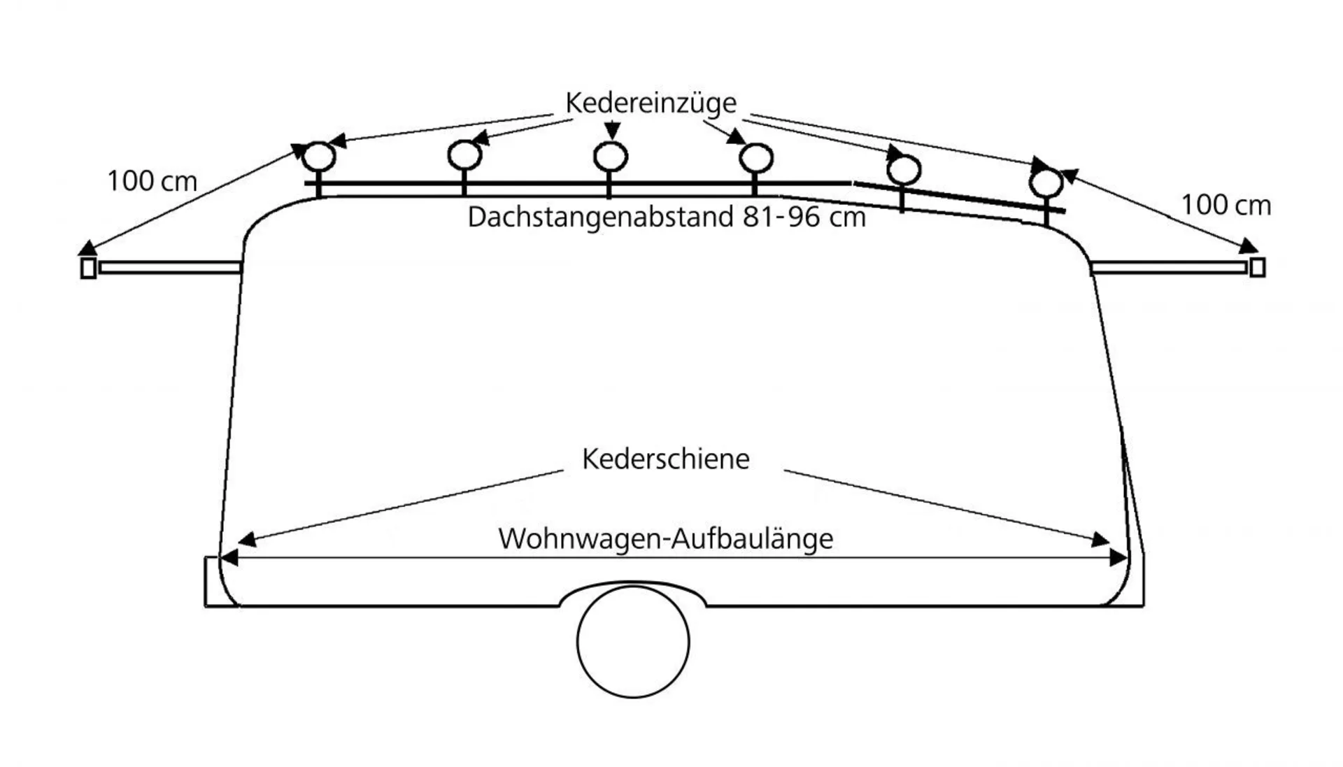 - Distance entre les supports : environ 80 - 100 cm, selon le type de caravane
