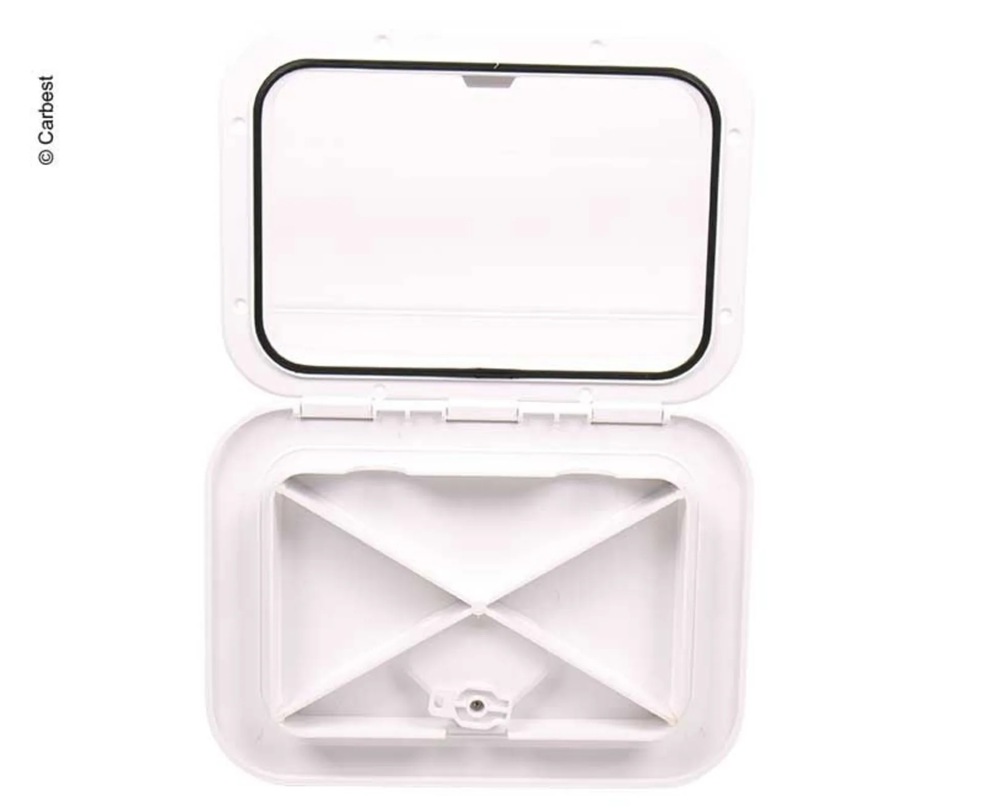 Avec un levier de fermeture. Charnière s'ouvrant à 180°. Résistant aux UV et à la corrosion.