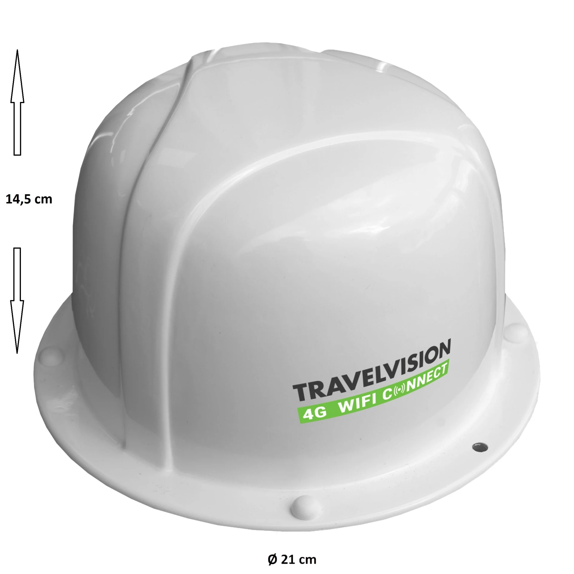 L'unité extérieure de Travel Vision 4G WiFi Connect est équipée de puissantes antennes GSM 3 / 4G et WiFi. Celles-ci peuvent recevoir, amplifier et distribuer les signaux de manière optimale. Le signal est transmis au routeur dans le véhicule via un câble. Avec le routeur, tu crées ton propre réseau WLAN fiable et sécurisé