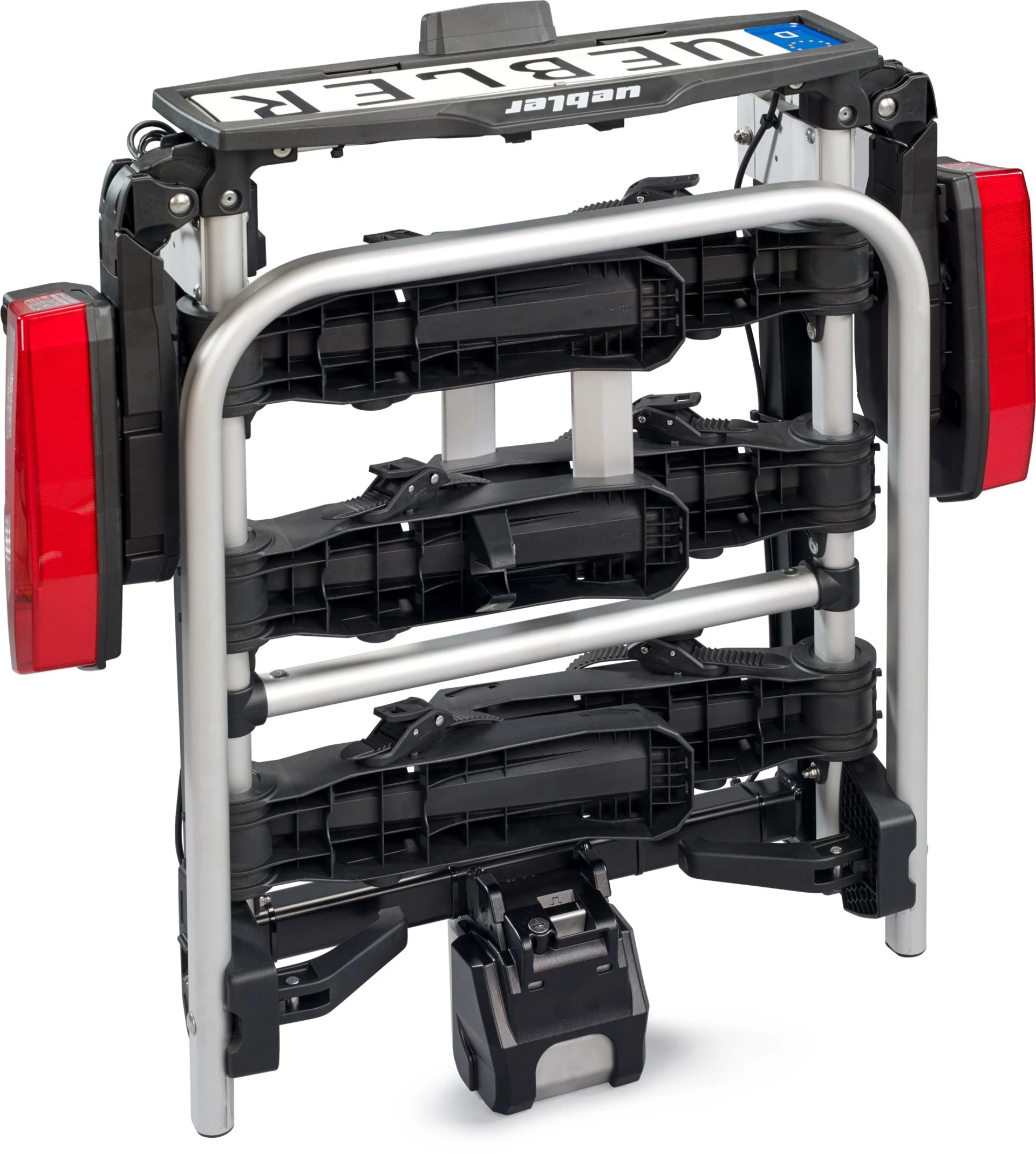 Der Fahrradträger bietet einen mühelosen Transport für Fahrzeuge mit Flügeltüren und tiefen Heckklappen. Dank des patentierten IQ-Schnellverschlusses lässt er sich einfach und kraftsparend auf der Anhängerkupplung anbringen. Abnehmbare Abstandshalter mit Einhand-Bedienung und extra breite Radschienen für Reifen bis 4,5 Zoll sorgen für Flexibilität. Mit nur 20 kg Eigengewicht ist der Träger leicht und ermöglicht eine hohe Zuladung. Die Abklappfunktion lässt sich bequem per Fußhebel auslösen. Der Träger verfügt über eine gleichschließende Diebstahlsicherung und ist für E-Bikes geeignet.