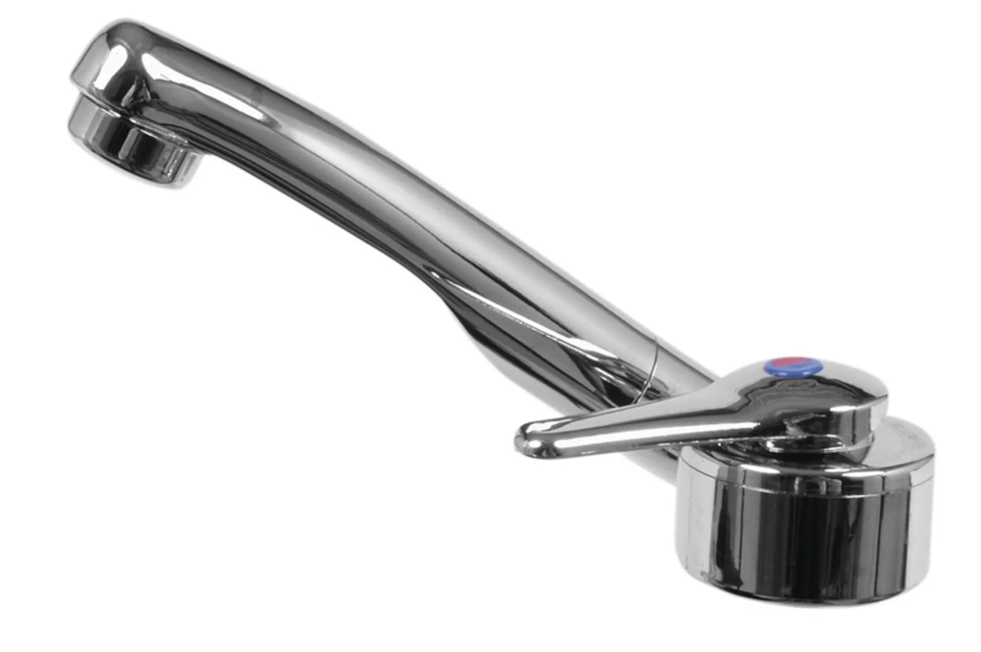 Convient aux éviers encastrés Cramer et SMEV avec couvercle en verre. Résiste à une pression de 3 bars grâce aux disques en céramique. Tube de sortie pivotant verticalement avec tamis à jet. Micro-interrupteur 12 V / 6 A. Le robinet de sortie peut être déplacé vers le haut et vers le bas. Avec raccords pour tuyaux. Trou de 33 mm. Produit de série chez DETHLEFFS. Chrome