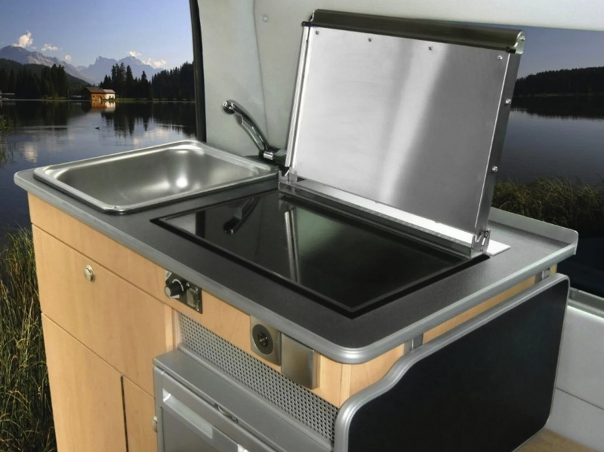 Dans le Volkswagen Transporter, Reimo en a déjà équipé les camping-cars Multistyle et Travelstyle en combinaison avec un réfrigérateur à compresseur, à la demande du client.