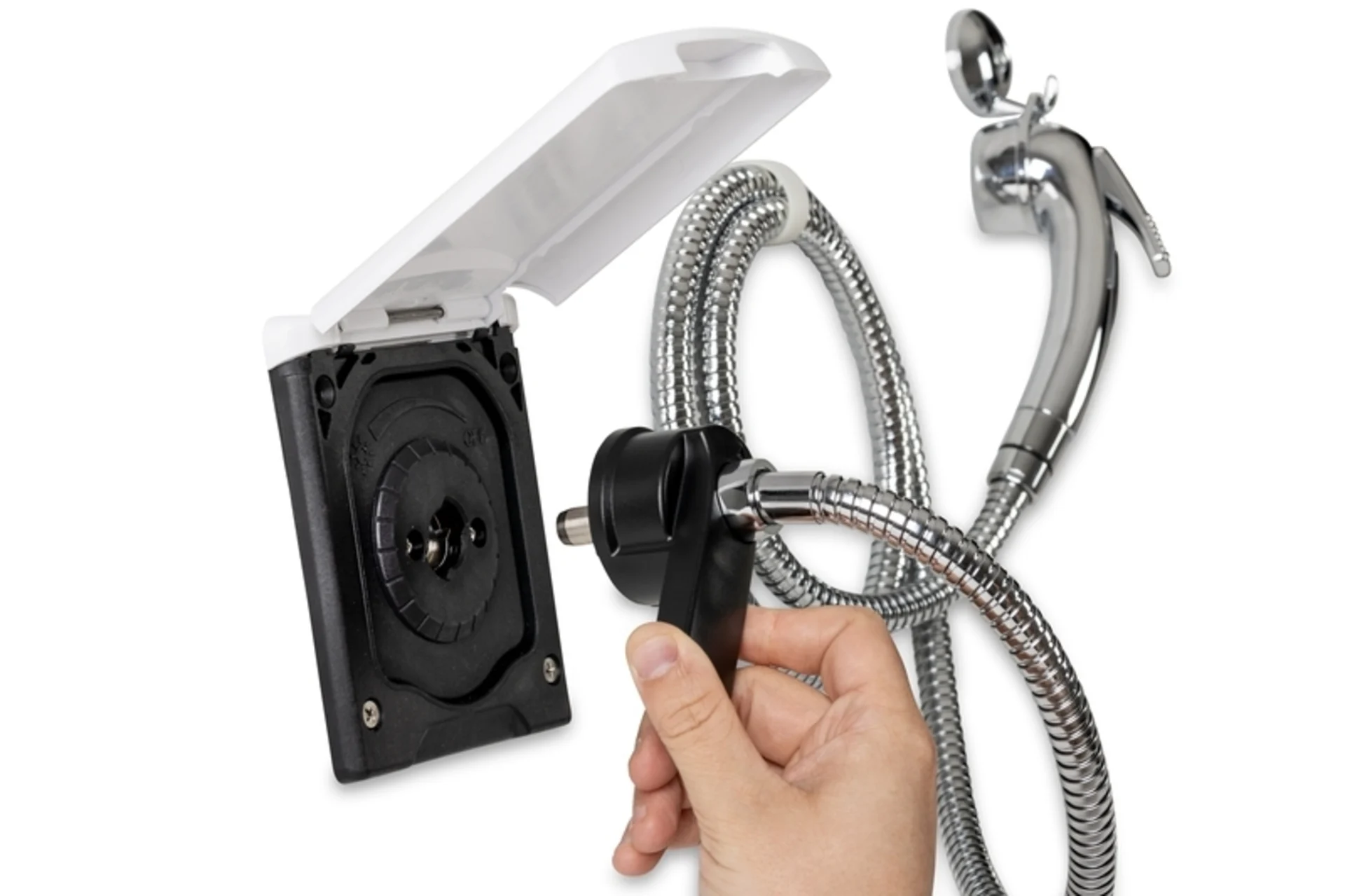 Wassersteckdose mit Vormischer, weiß,inkl.Dusche+Haken B115H133T100