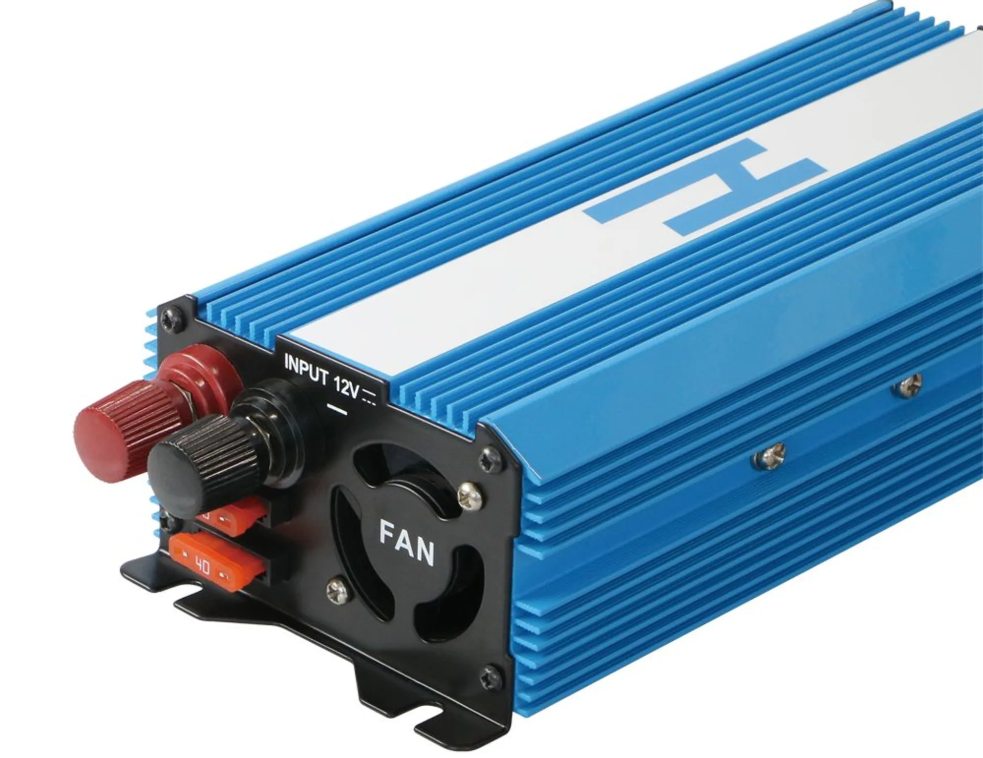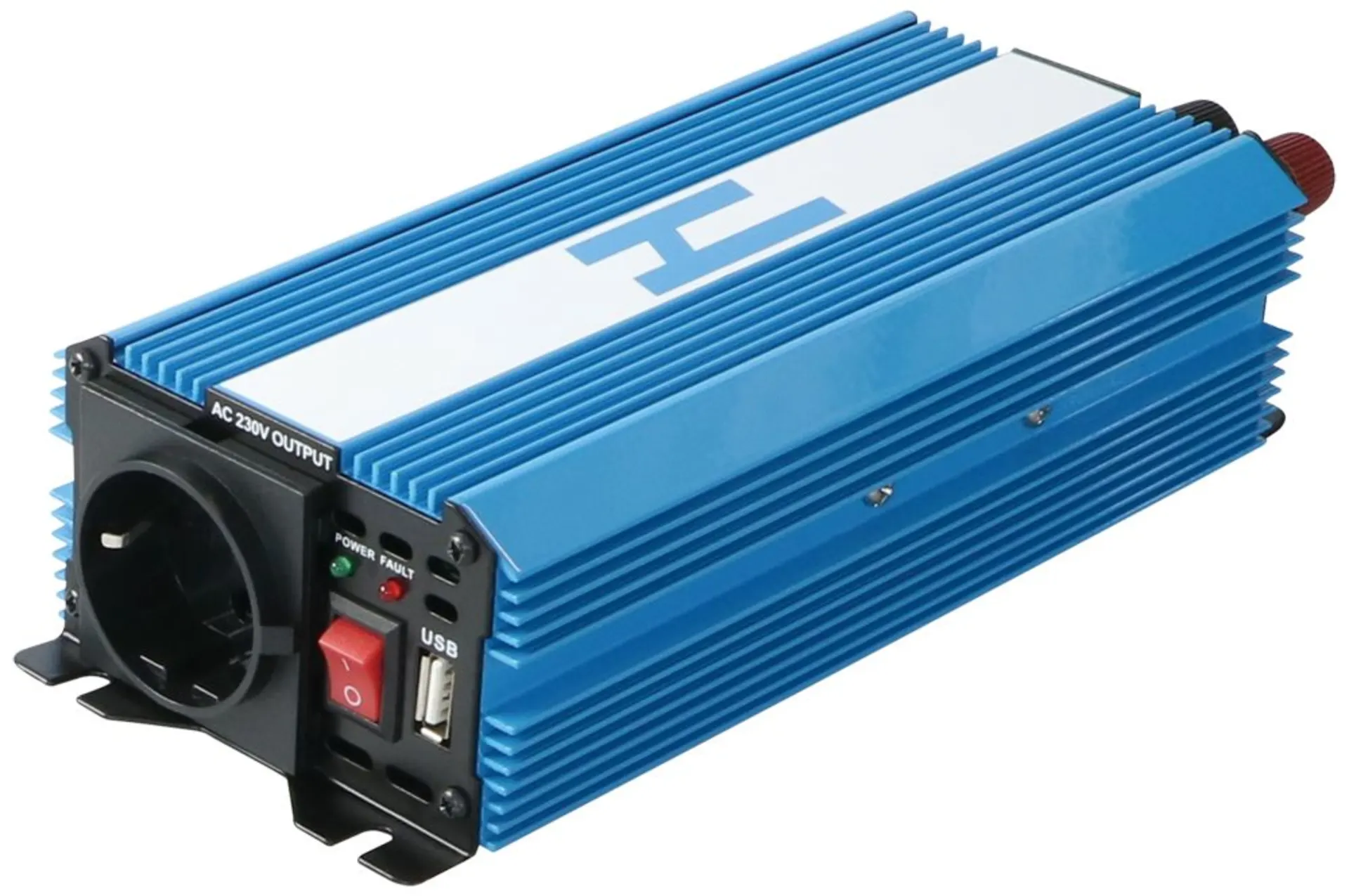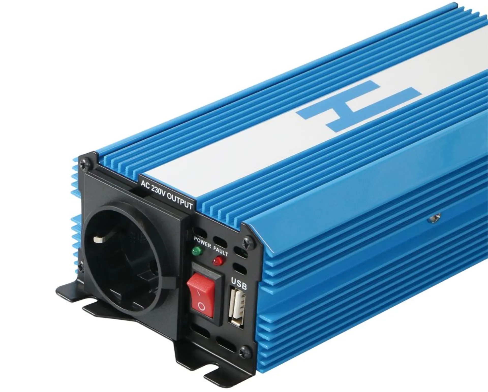 Wandelt den Gleichstrom (12 VDC) im Fahrzeug in Wechselstrom (230 VAC).