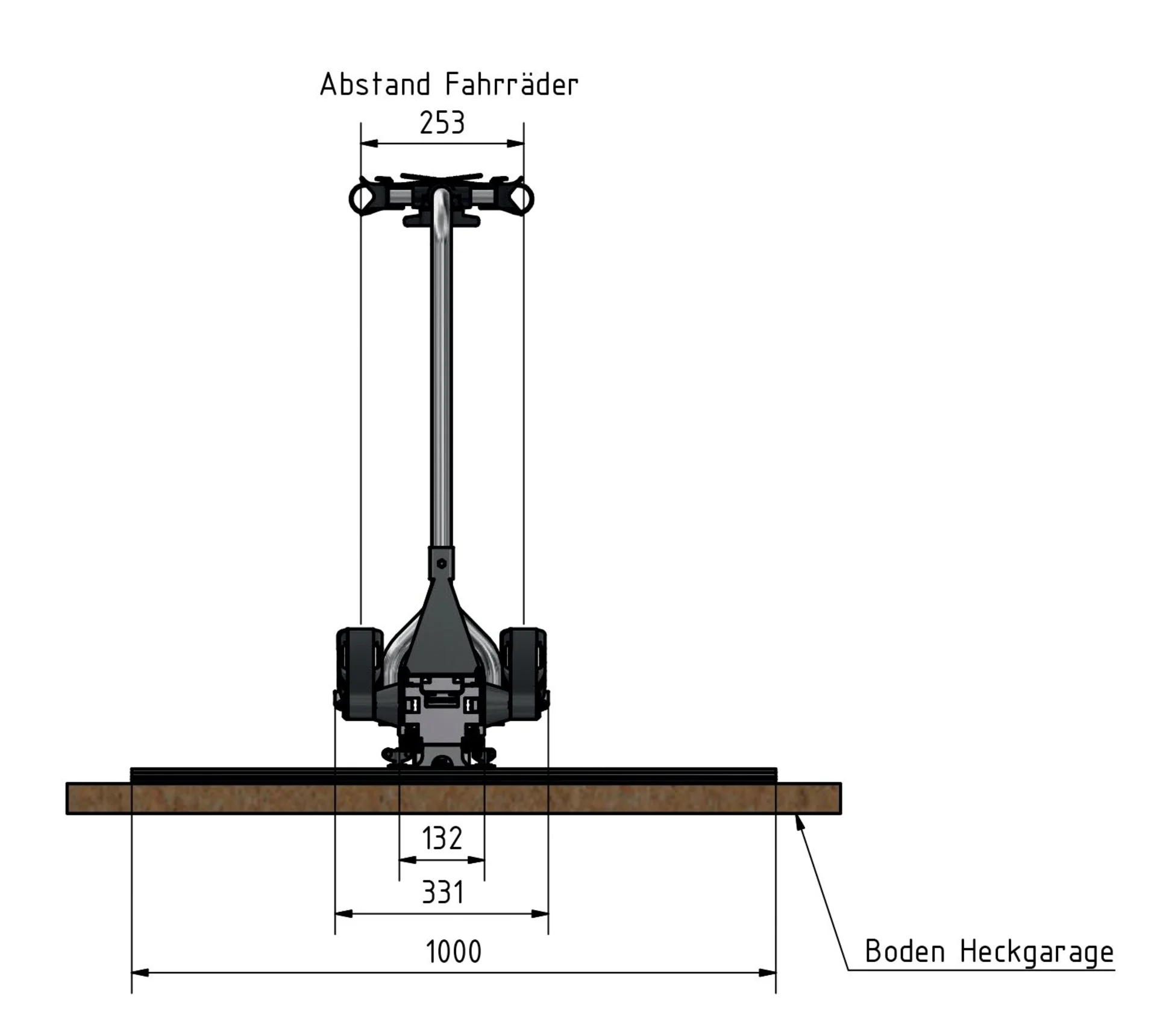 Heckgaragen Fahrradträger beidseitig ausziehbar mit Querverschiebung in der Garage.